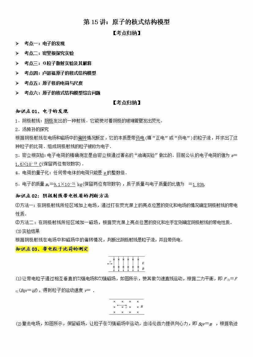 第15讲:原子的核式结构模型 学生版