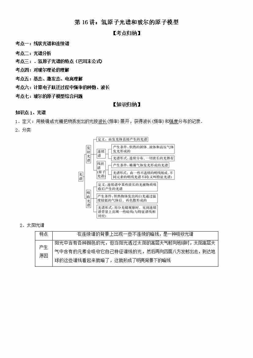 第16讲:氢原子光谱和玻尔的原子模型 学生版
