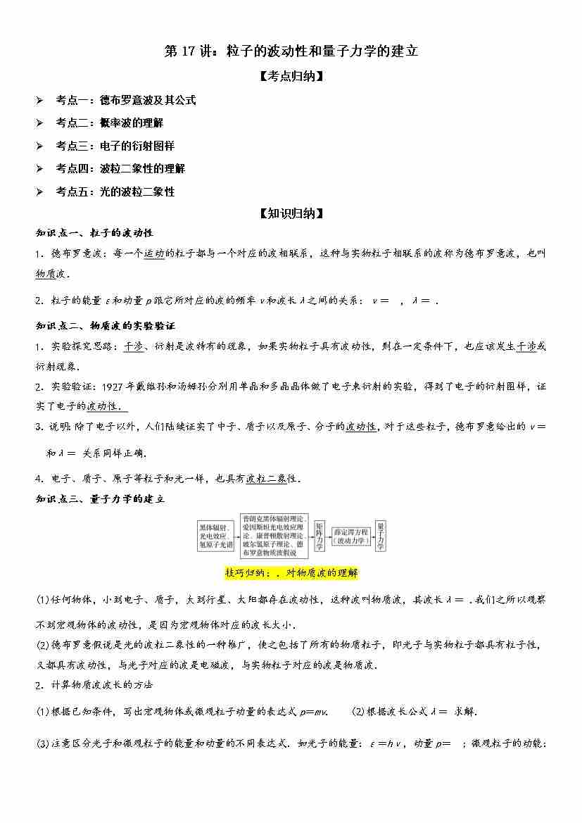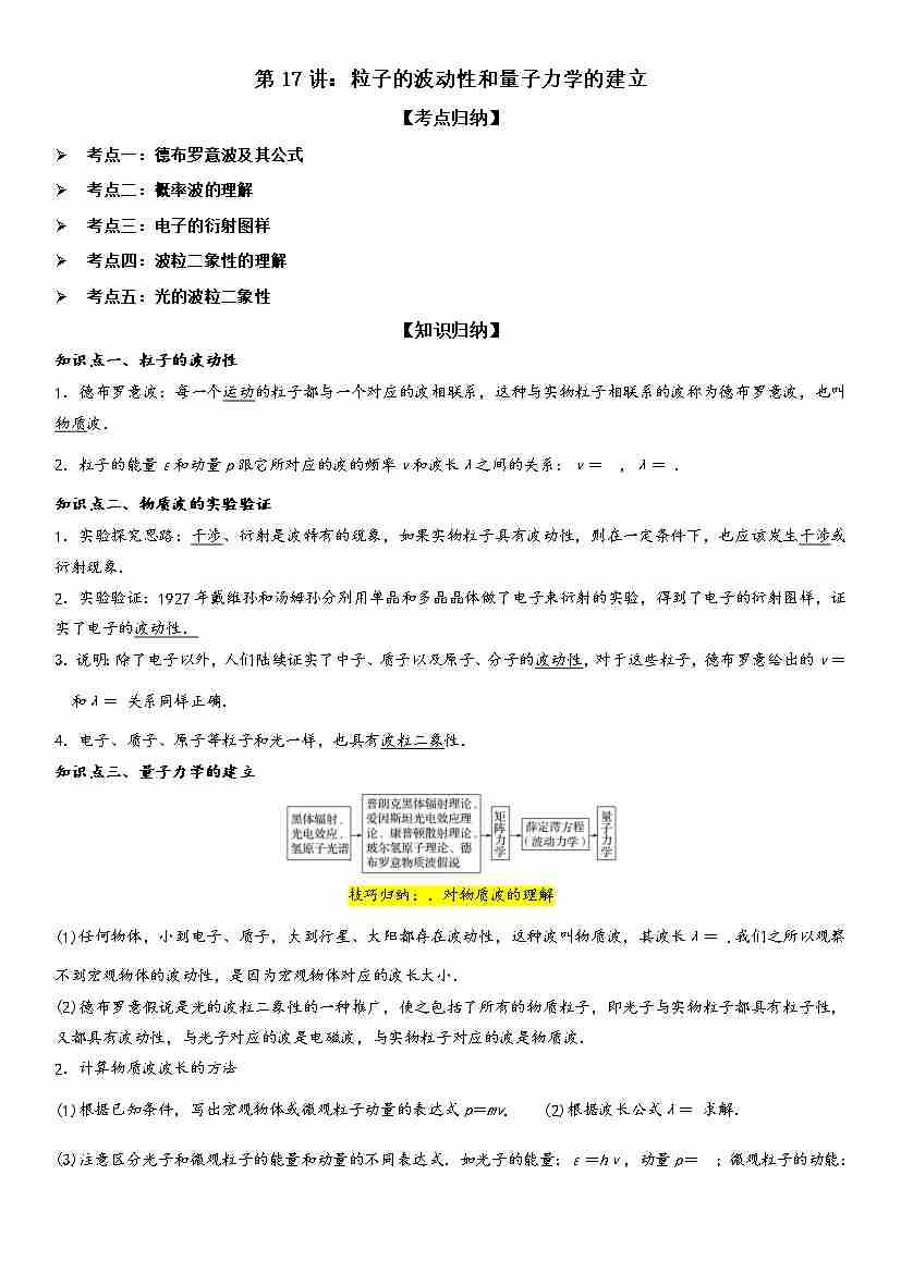 第17讲:粒子的波动性和量子力学的建立 学生版