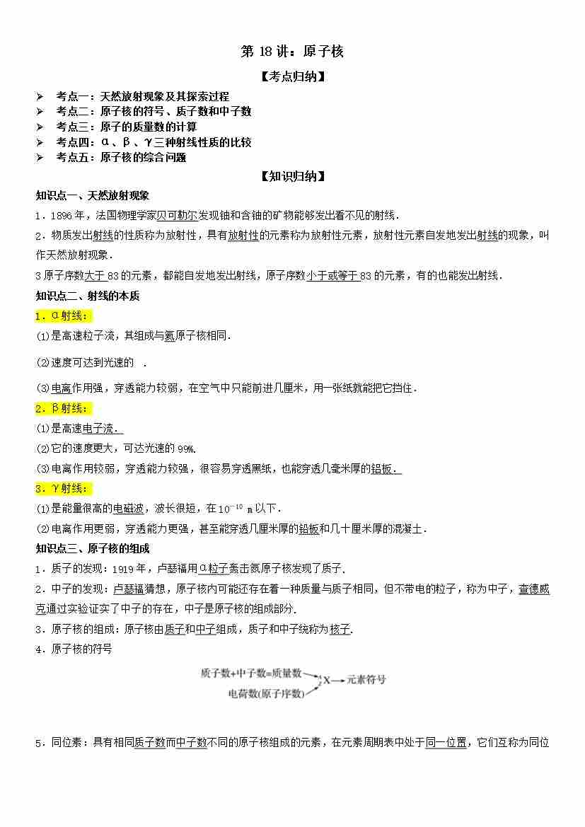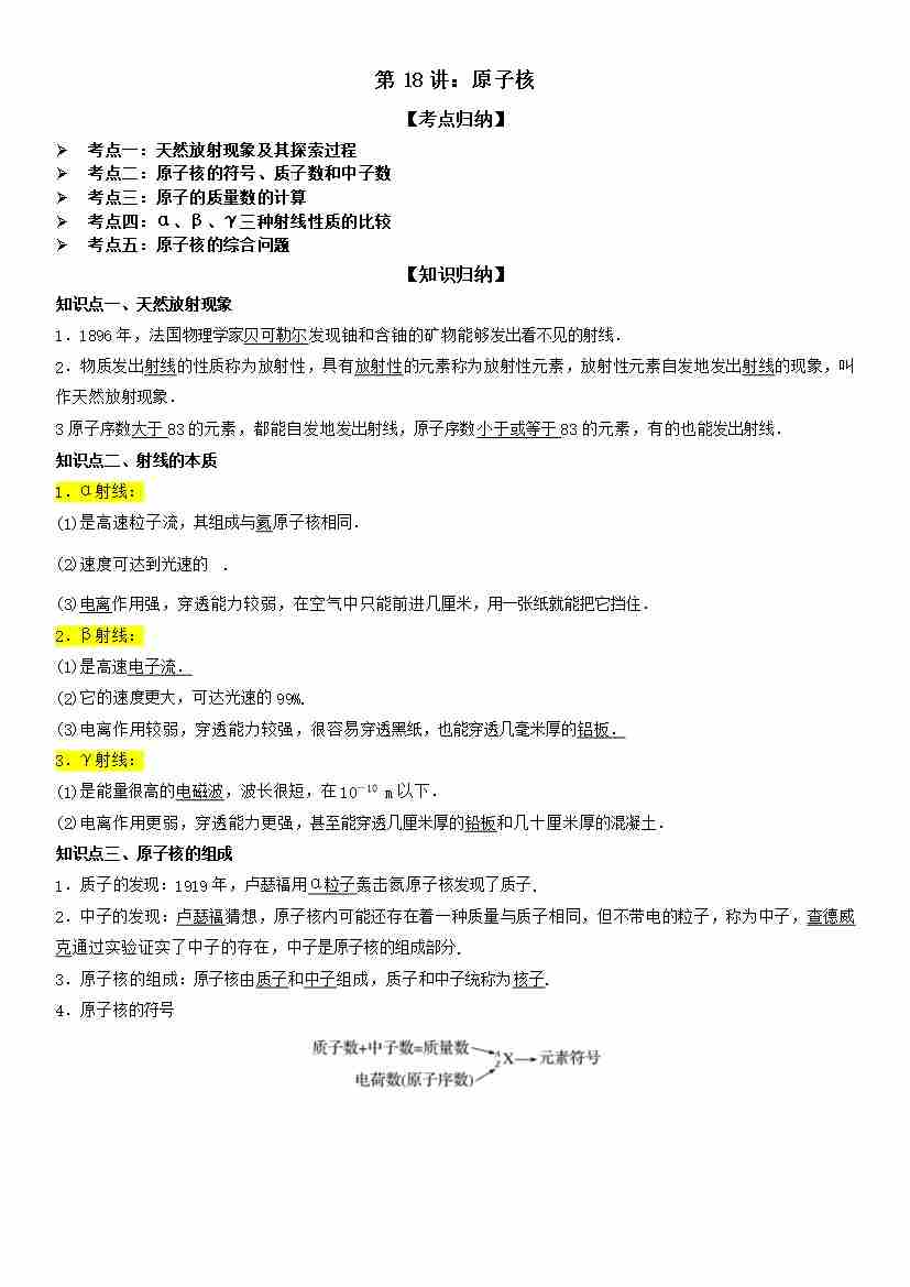 第18讲:原子核 学生版