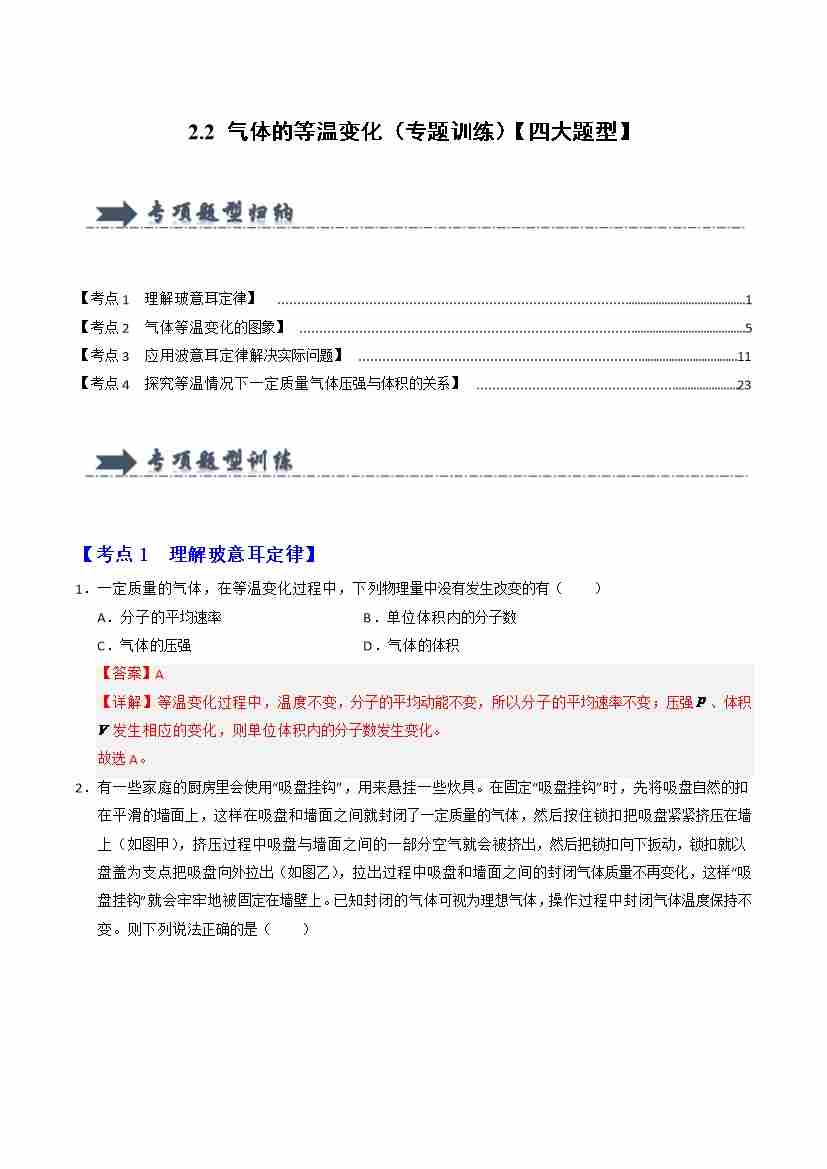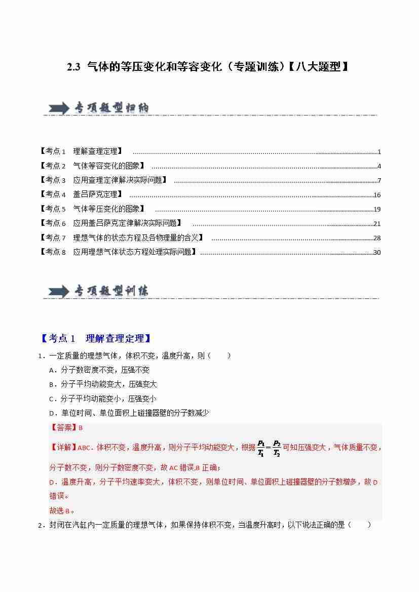 2.3 气体的等压变化和等容变化(专题训练)(八大题型)(教师版)