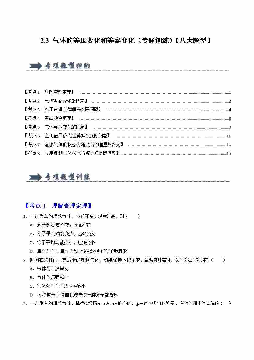 2.3 气体的等压变化和等容变化(专题训练)(八大题型)(学生版)