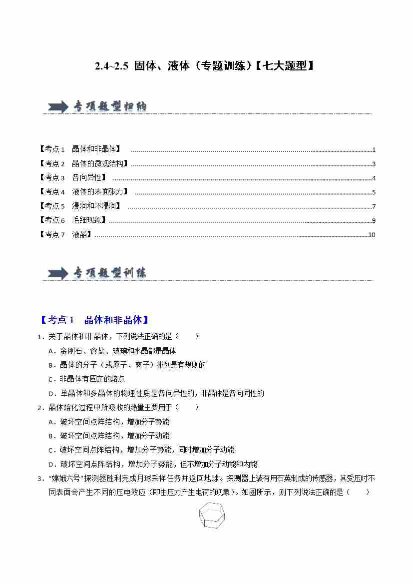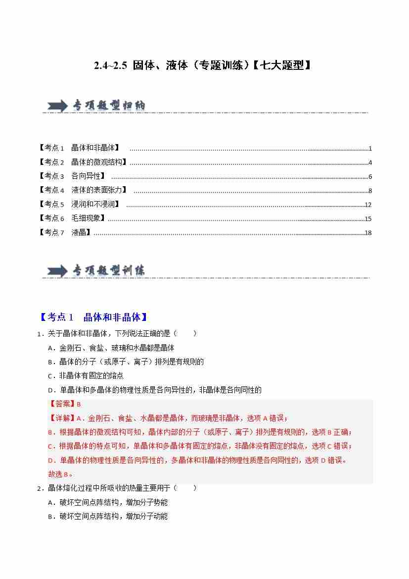 2.4~2.5 固体、液体(专题训练)(七大题型)(教师版)