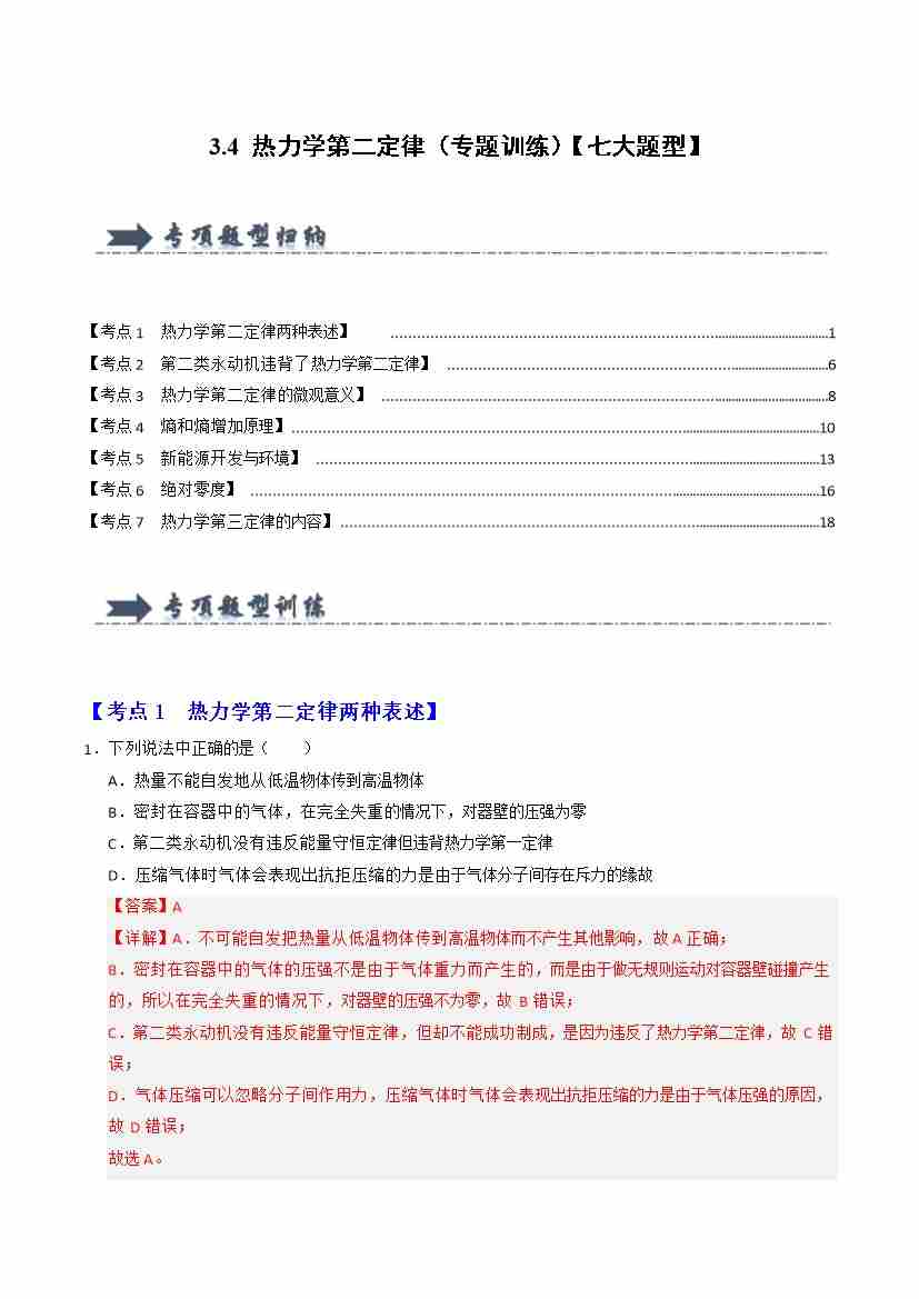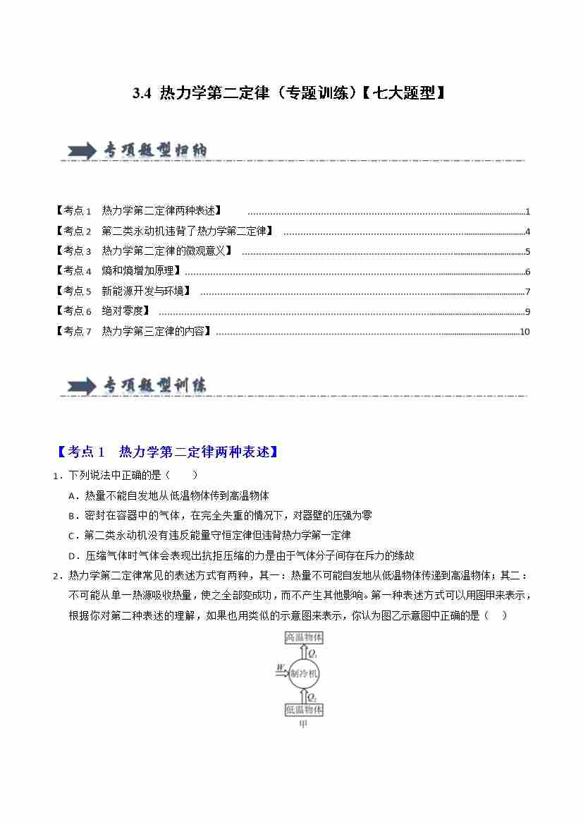 3.4 热力学第二定律(专题训练)(七大题型)(教师版)