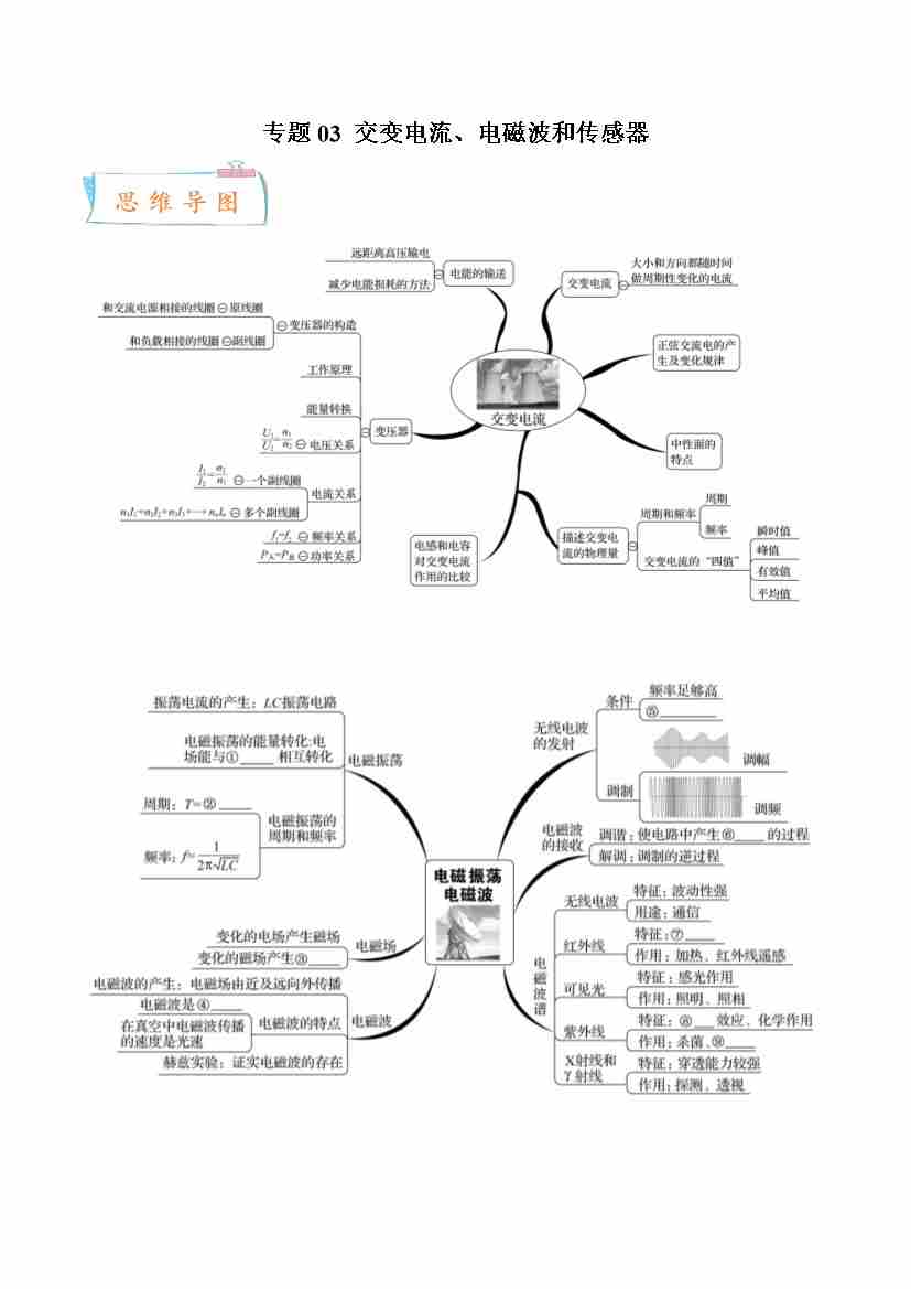 专题03 交变电流、电磁波和传感器-高二物理下学期期中期末(人教版2019)(学生版)