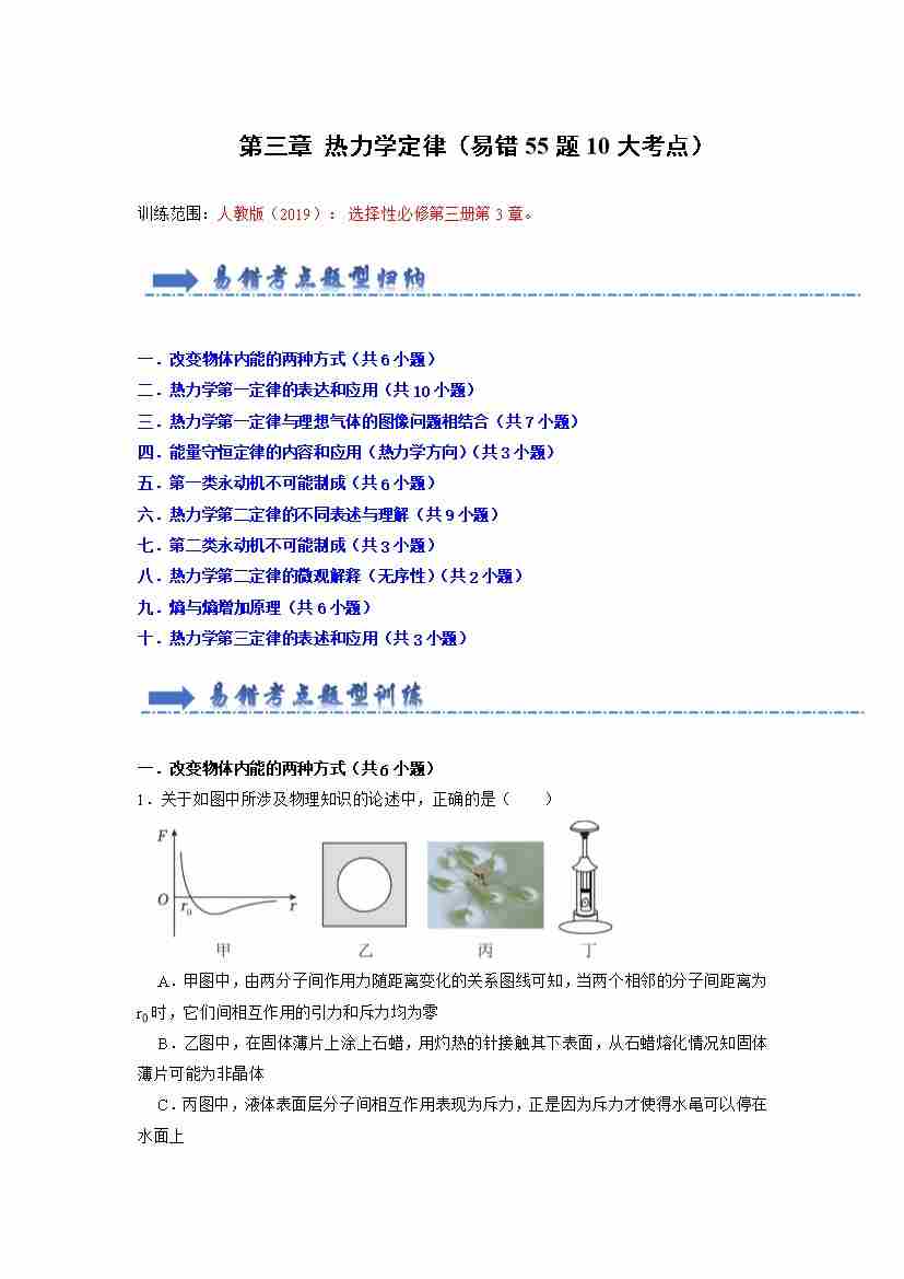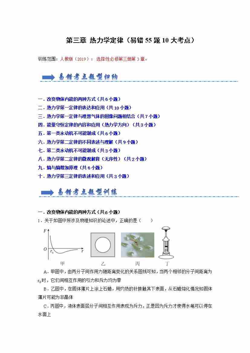 第3章 热力学定律(易错55题10大考点)(学生版)