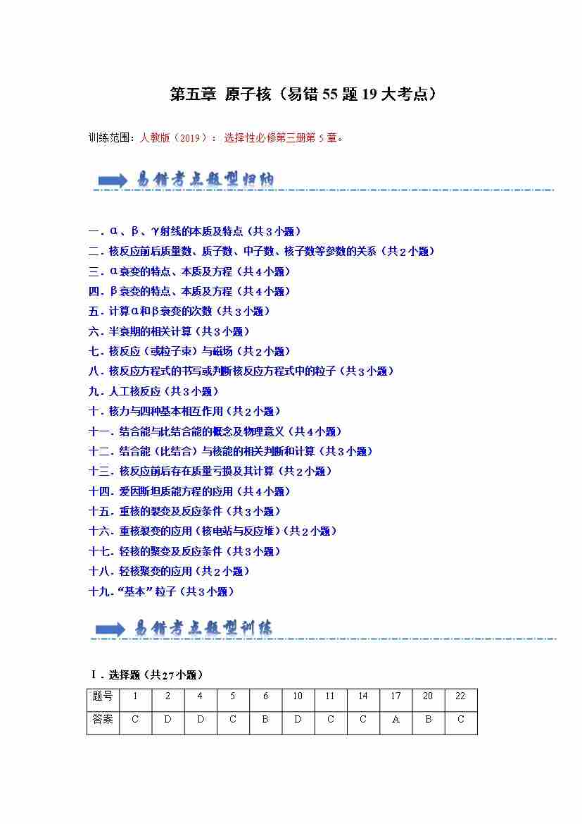 5.4~5.5 核裂变与核聚变、“基本”粒子(专题训练)(十大题型)(学生版)