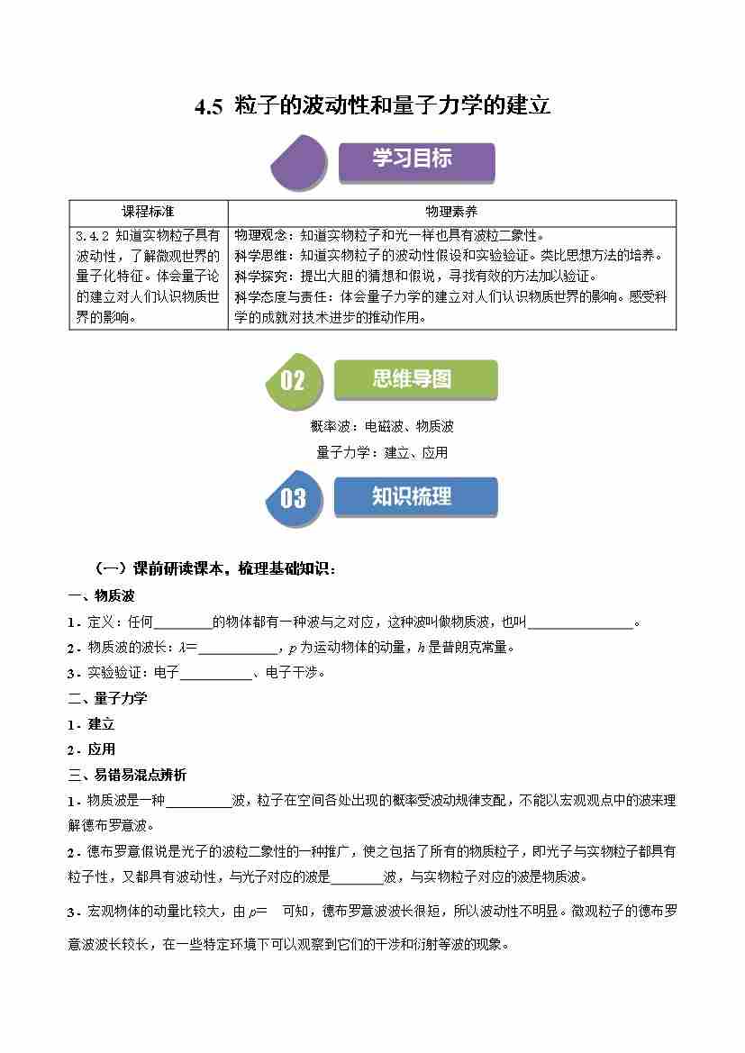 4.5 粒子的波动性和量子力学的建立 (学生版)