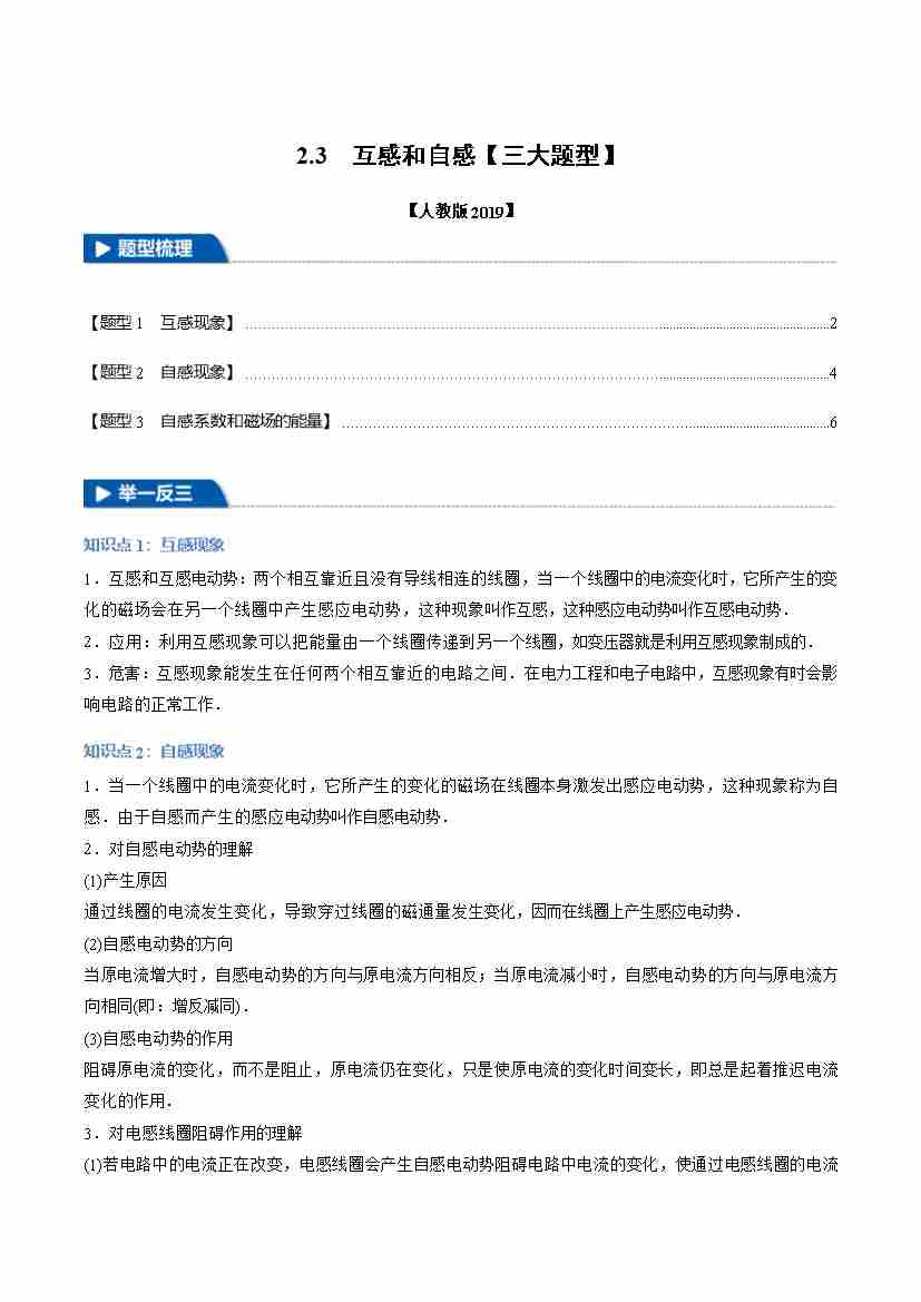 2.4 互感和自感(举一反三)(三大题型)(学生版)
