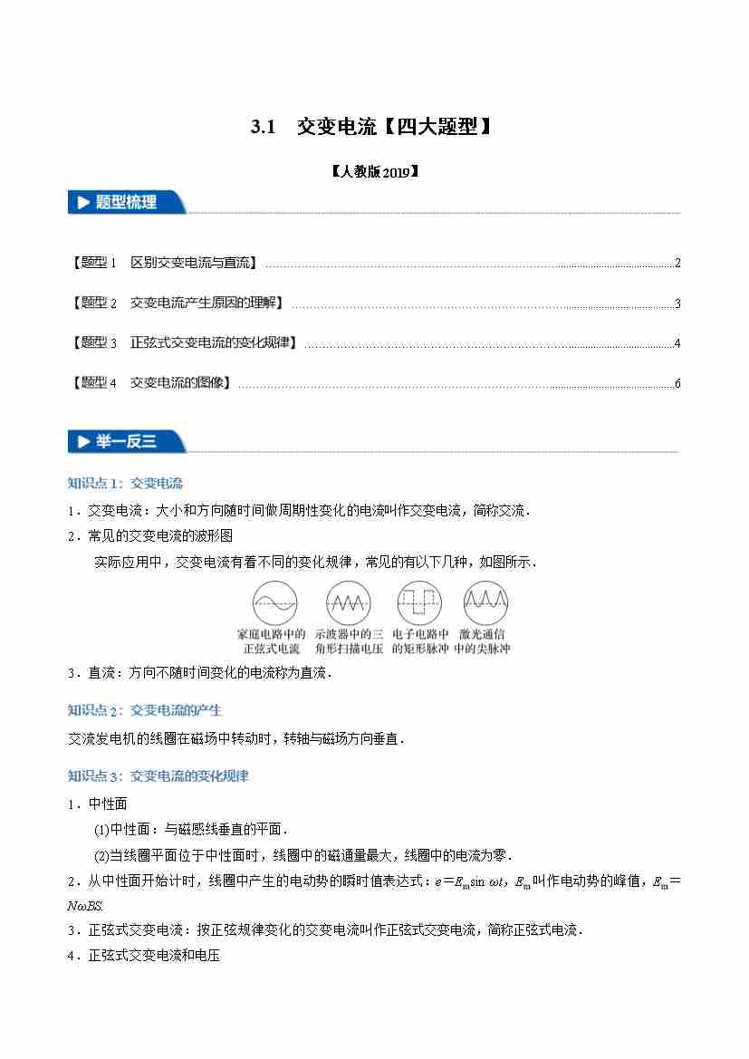 3.1 交变电流(举一反三)(四大题型)(学生版)