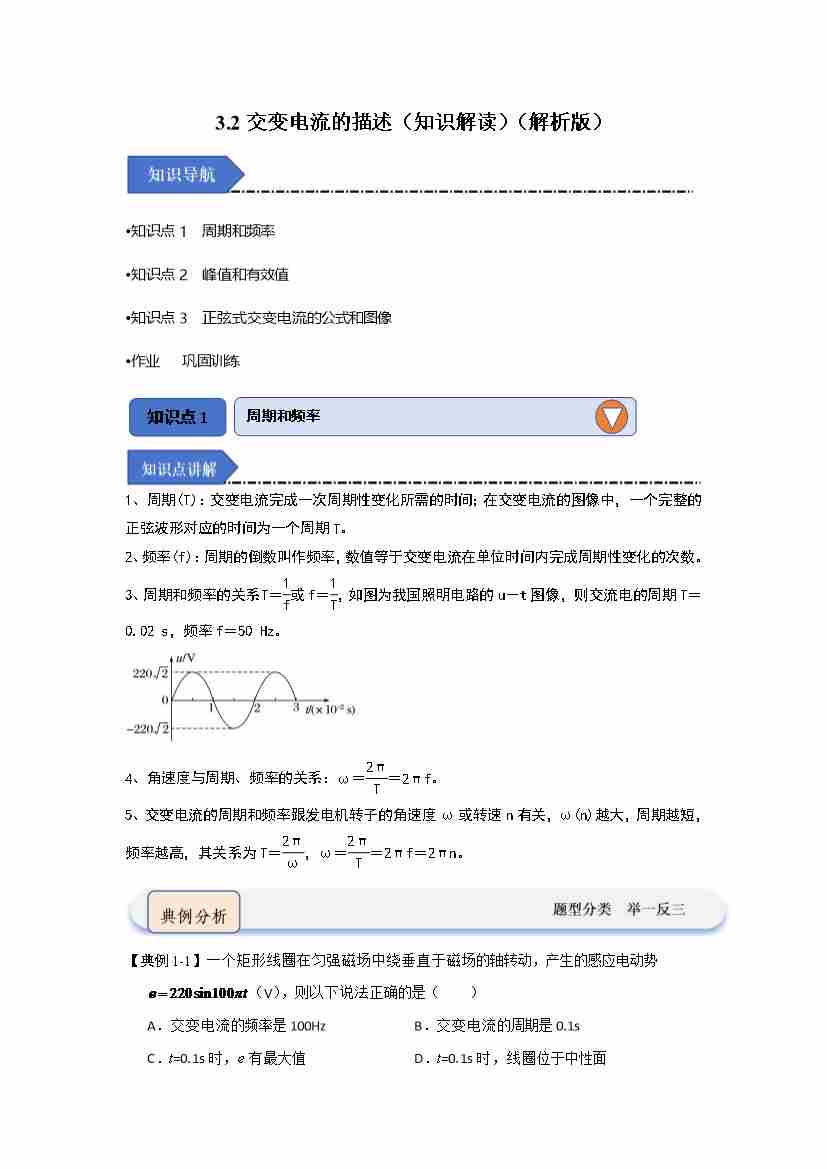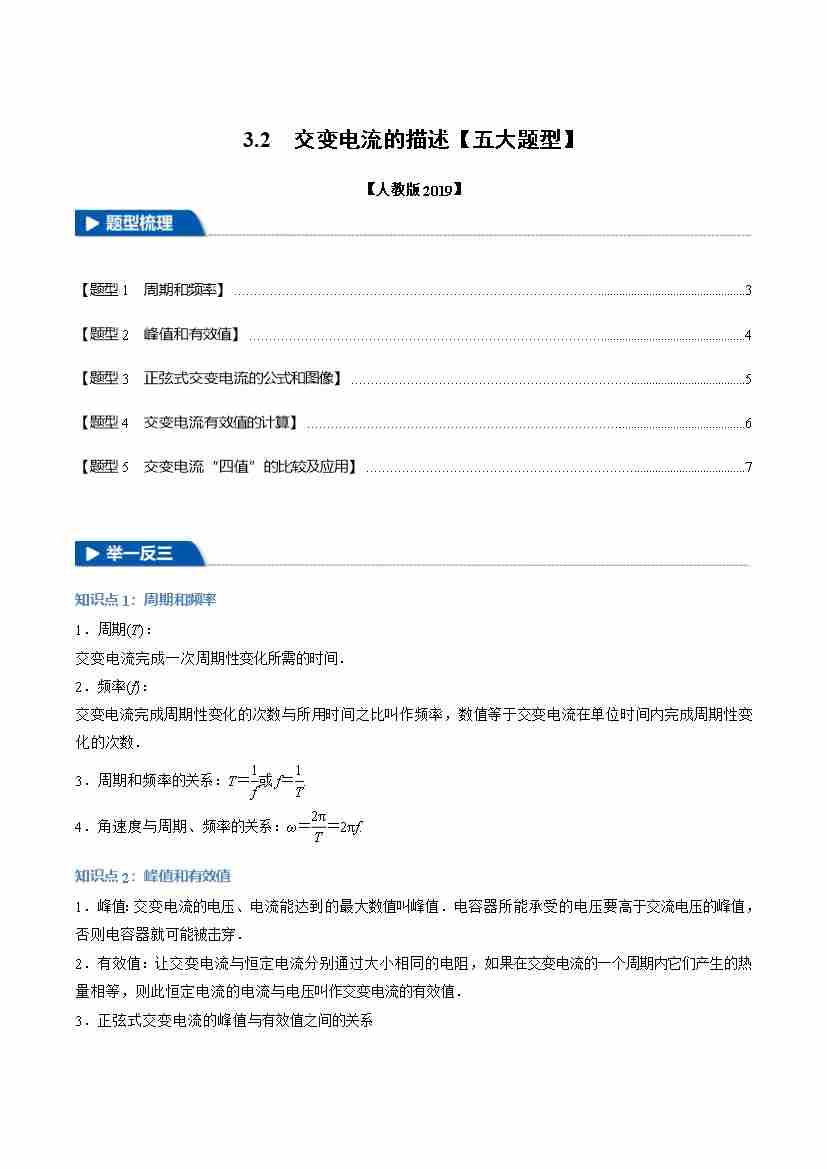 3.2 交变电流的描述(举一反三)(五大题型)(教师版)