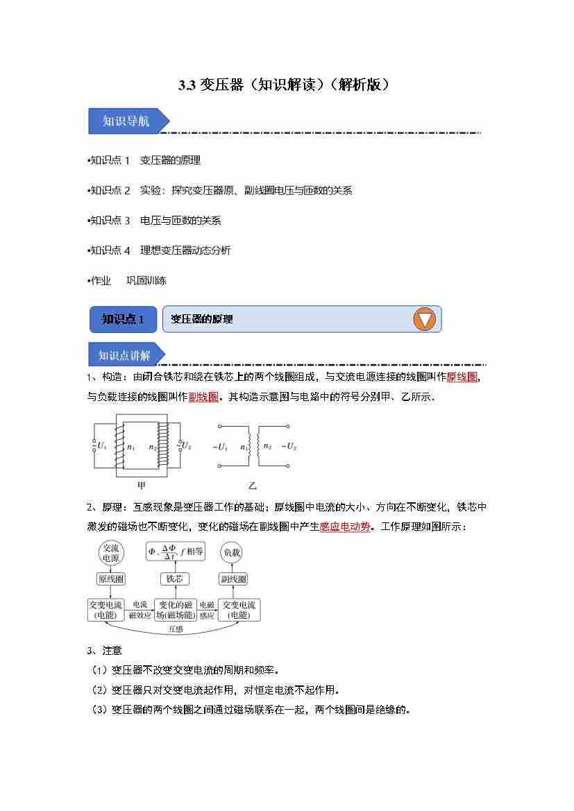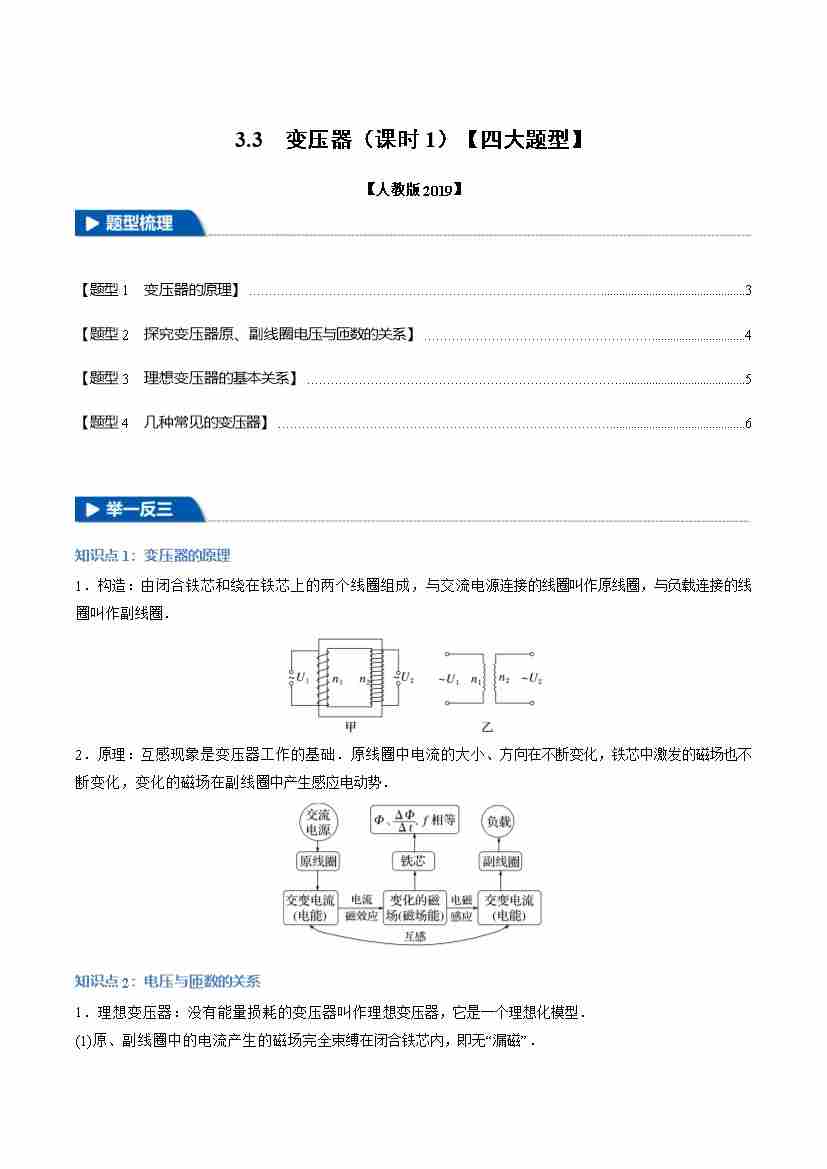 3.3 变压器(举一反三)(课时1)(四大题型)(学生版)