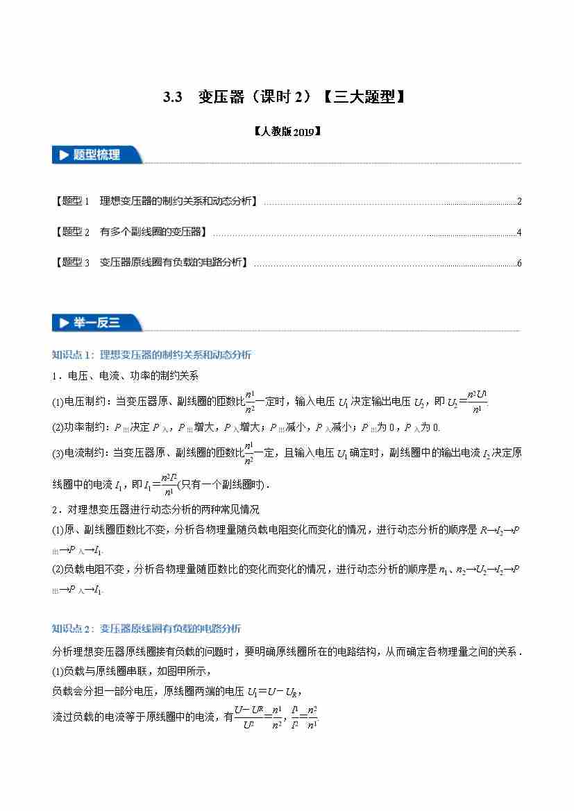 3.3 变压器(举一反三)(课时2)(三大题型)(教师版)