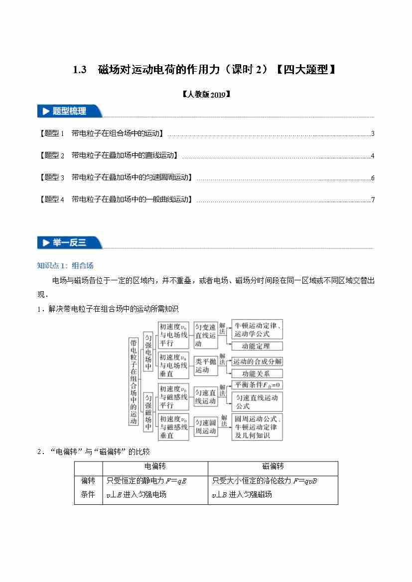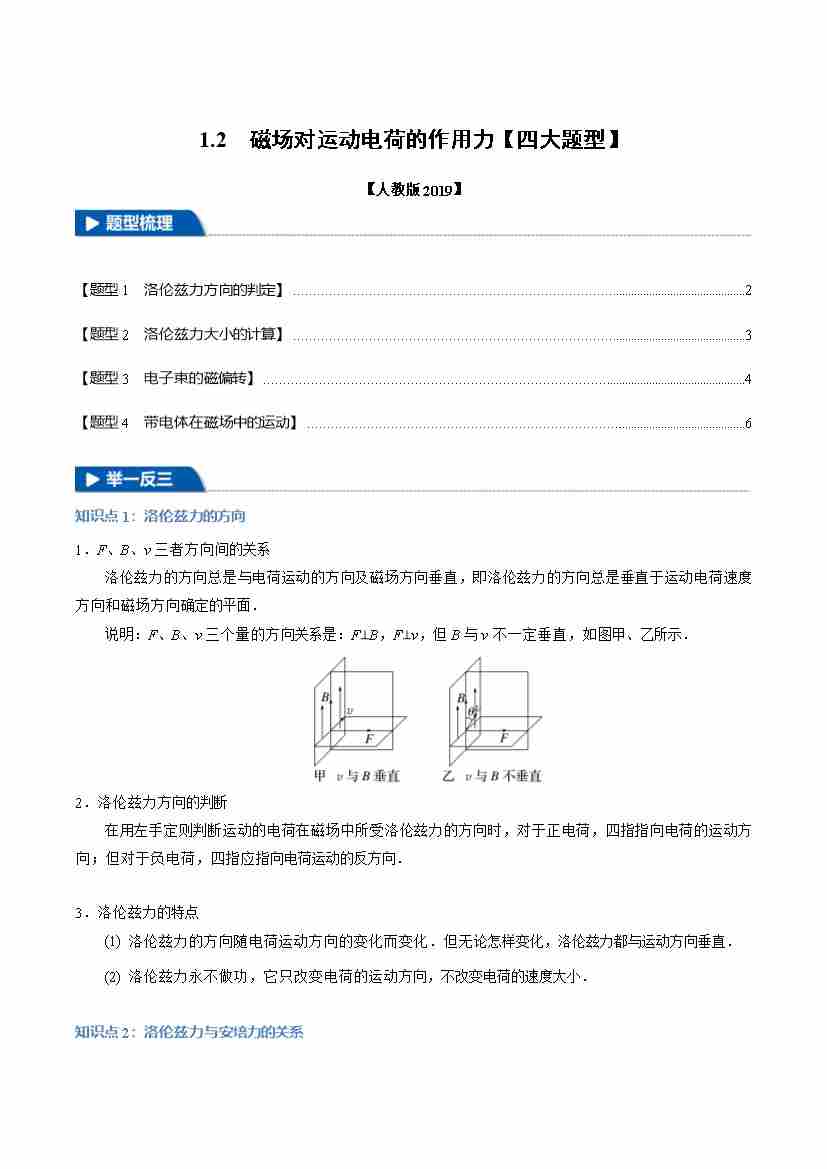 1.2 磁场对运动电荷的作用力(举一反三)(四大题型)(学生版)
