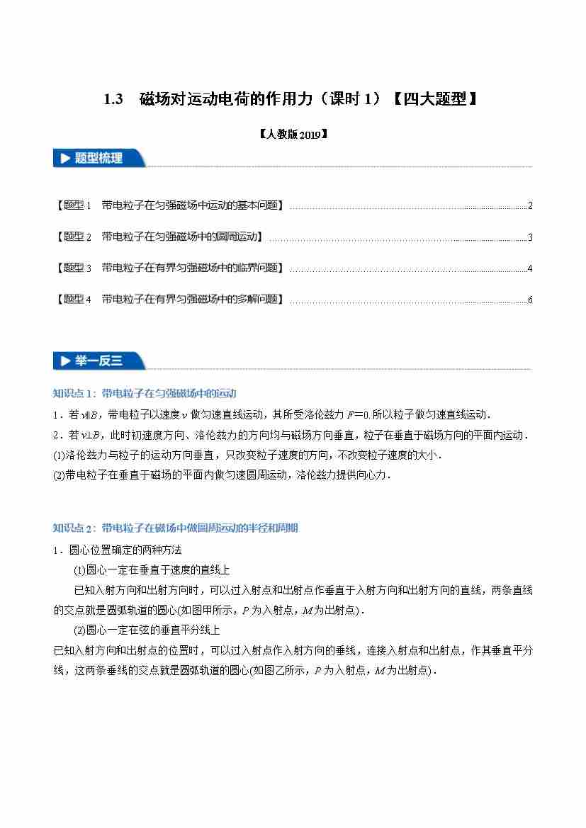 1.3 带电粒子在匀强磁场中的运动(课时1)(举一反三)(四大题型)(教师版)