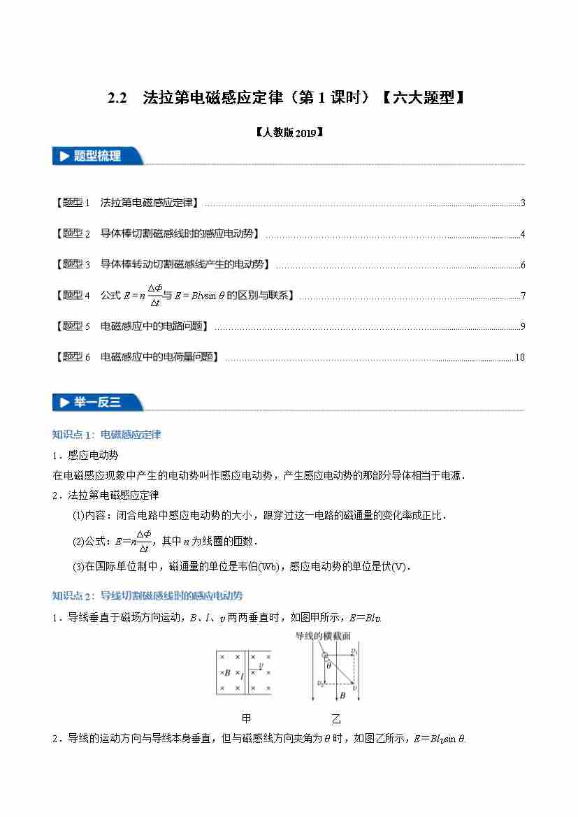 2.2 法拉第电磁感应定律(举一反三)(第1课时)(六大题型)(学生版)