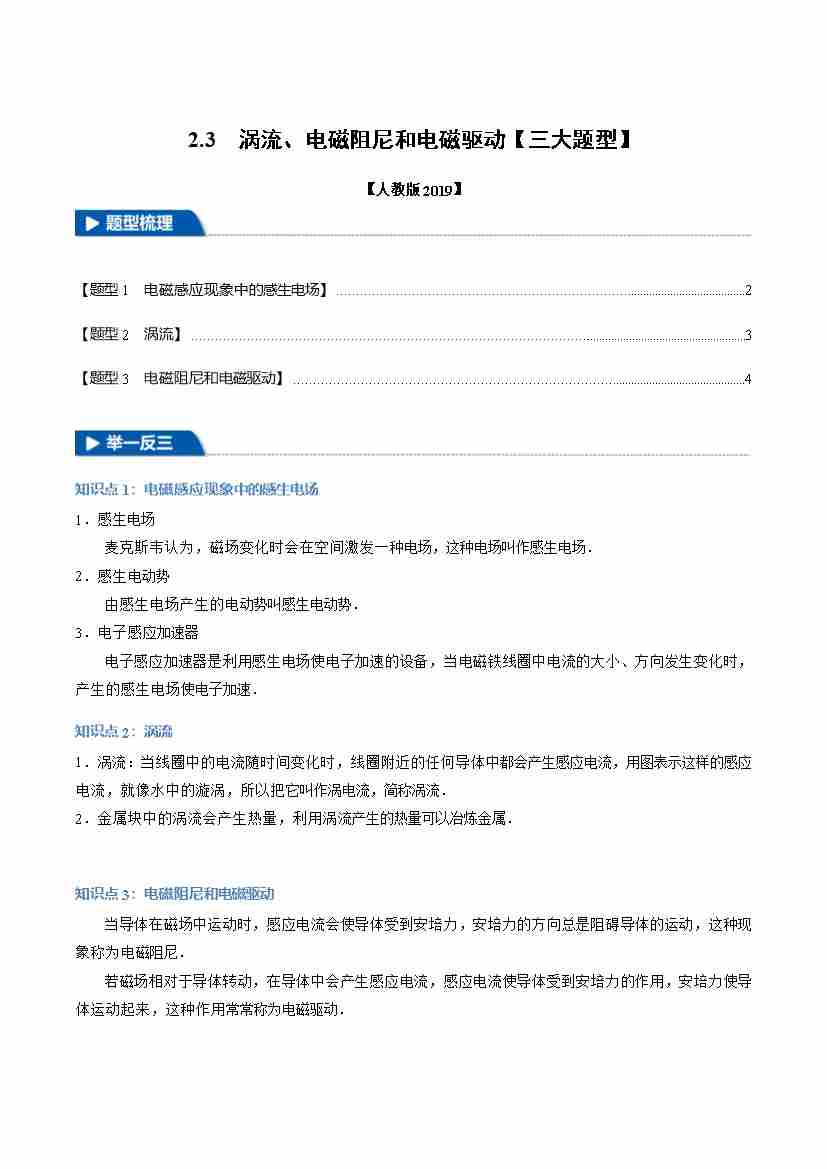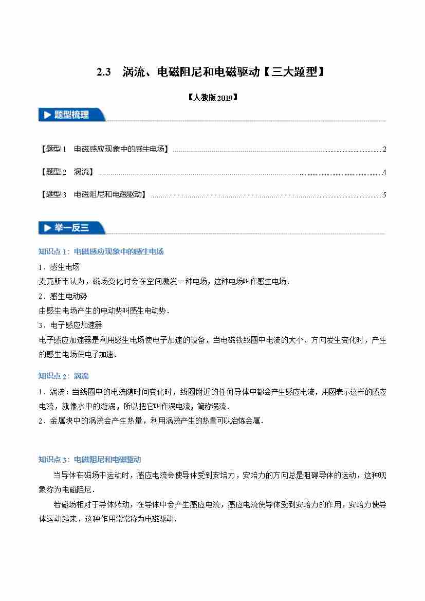 2.3 涡流、电磁阻尼和电磁驱动(举一反三)(三大题型)(学生版)