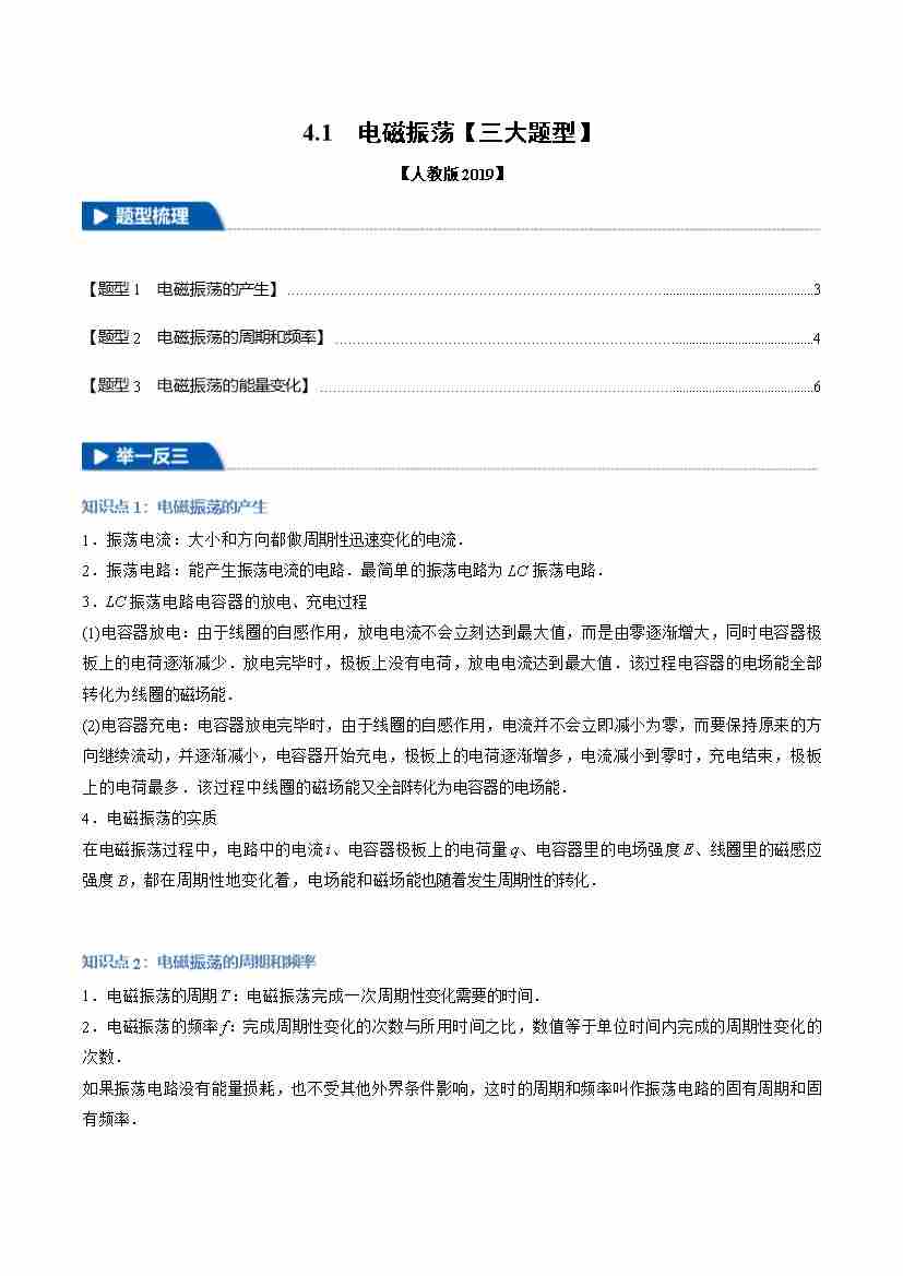 4.1 电磁振荡(举一反三)(三大题型)(教师版)