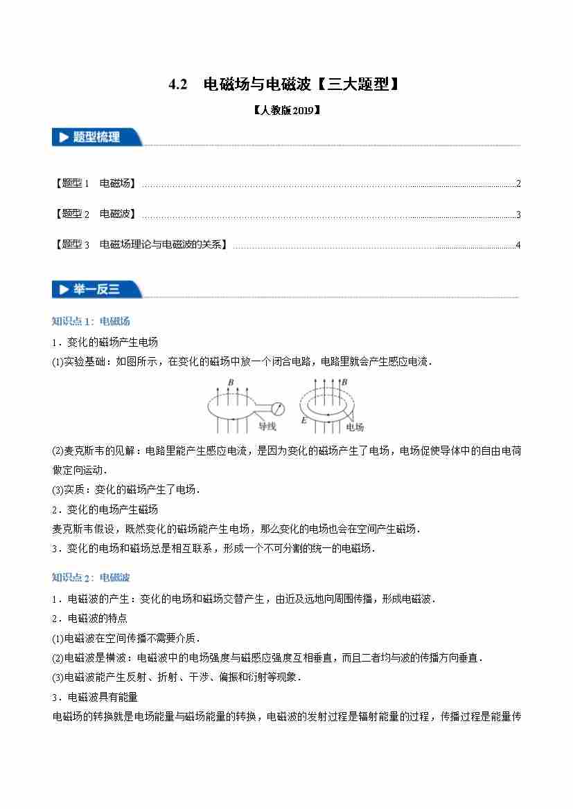 4.2 电磁场与电磁波(举一反三)(三大题型)(学生版)