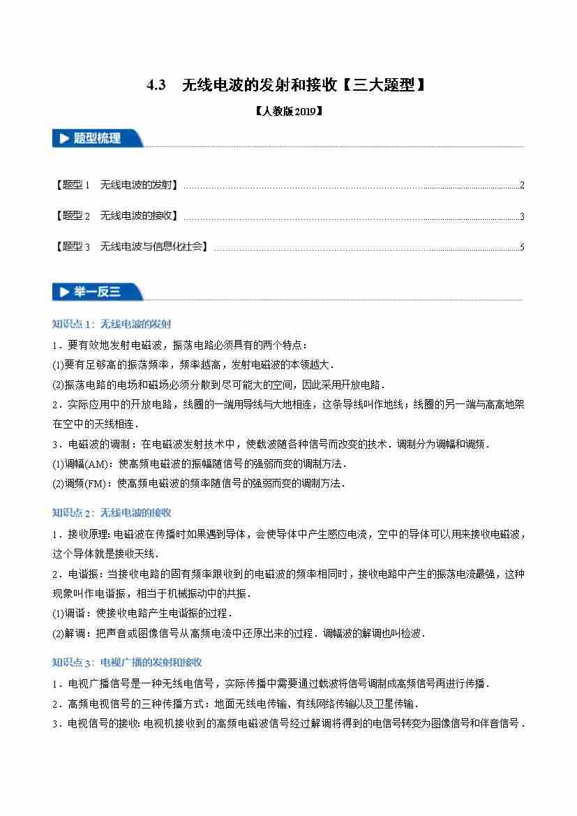 4.3 无线电波的发射和接收(举一反三)(三大题型)(学生版)