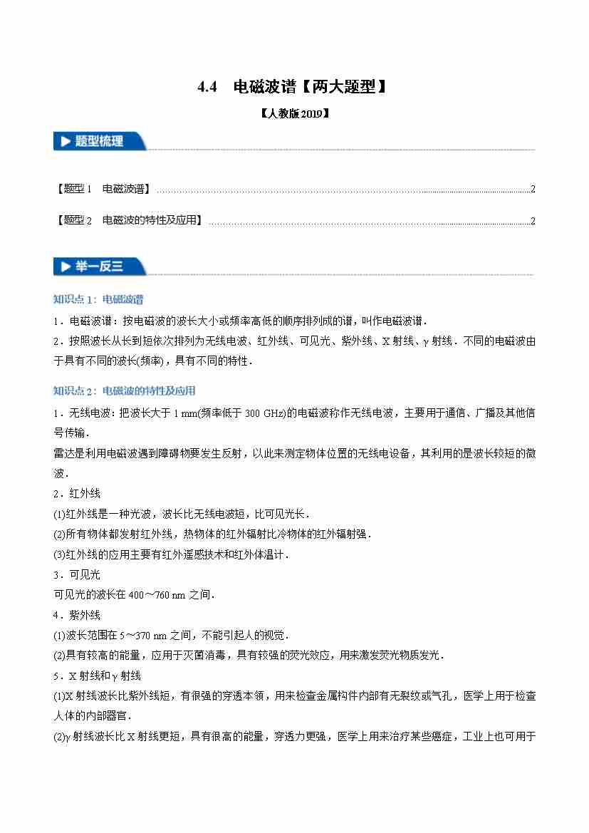 4.4 电磁波谱(举一反三)(两大题型)(学生版)