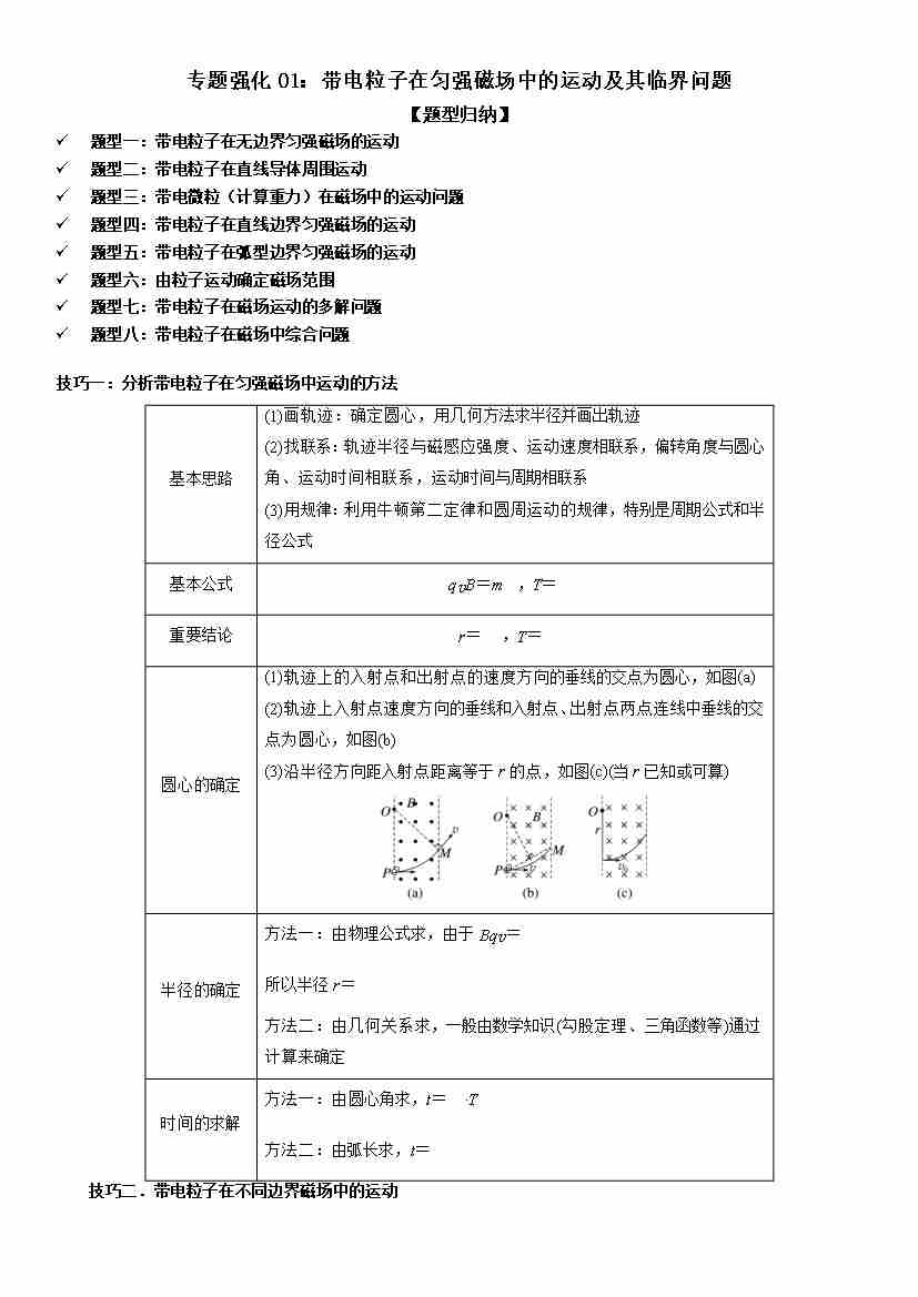 专题强化01:带电粒子在匀强磁场中的运动及其临界问题 学生版