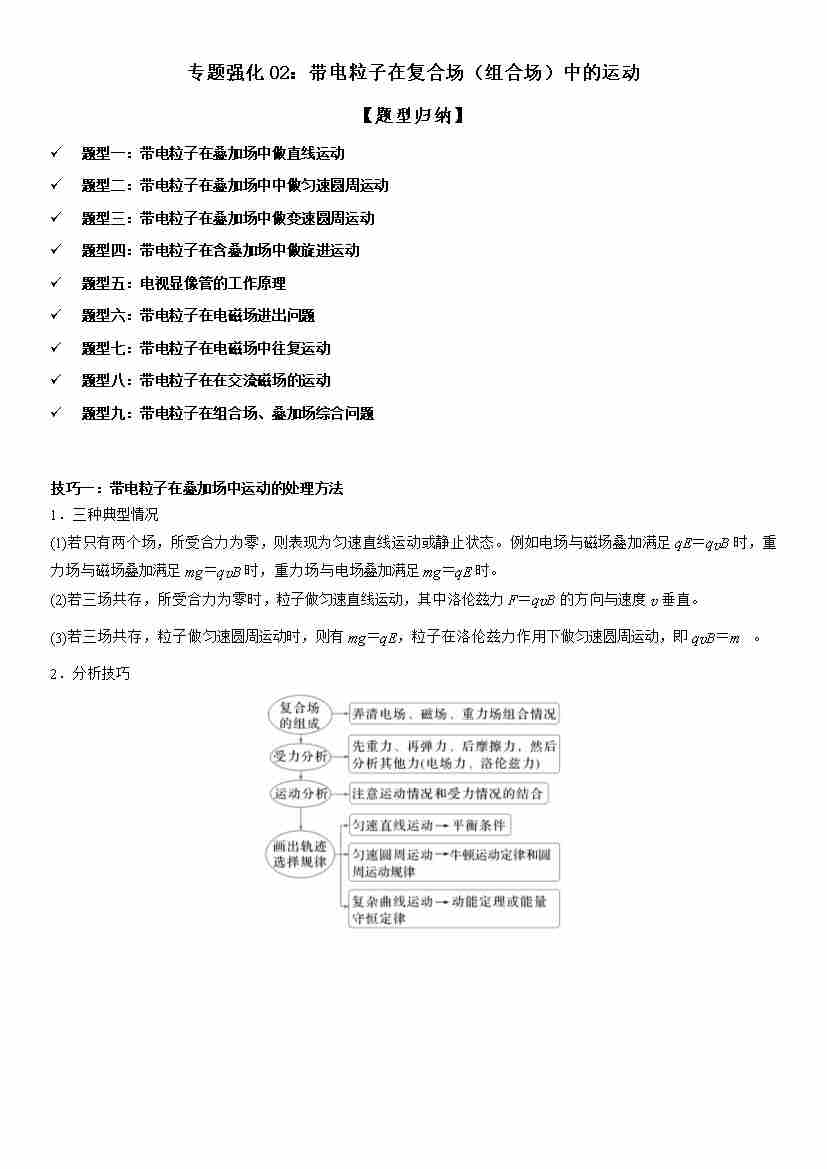 专题强化02:带电粒子在复合场(组合场)中的运动 学生版