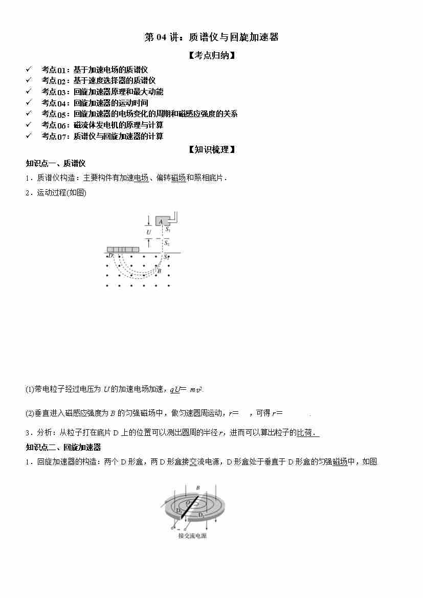 第04讲:质谱仪与回旋加速器 学生版