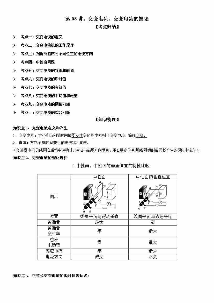 第08讲:交变电流、交变电流的描述 学生版