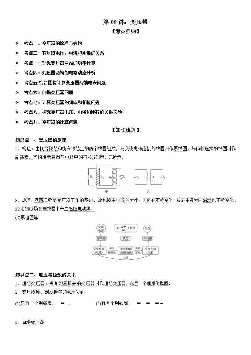 第09讲:变压器 学生版