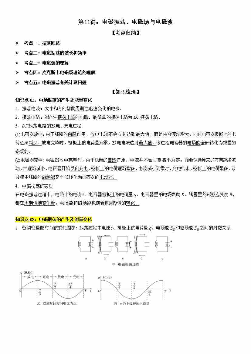 第11讲:电磁振荡、电磁场与电磁波 学生版