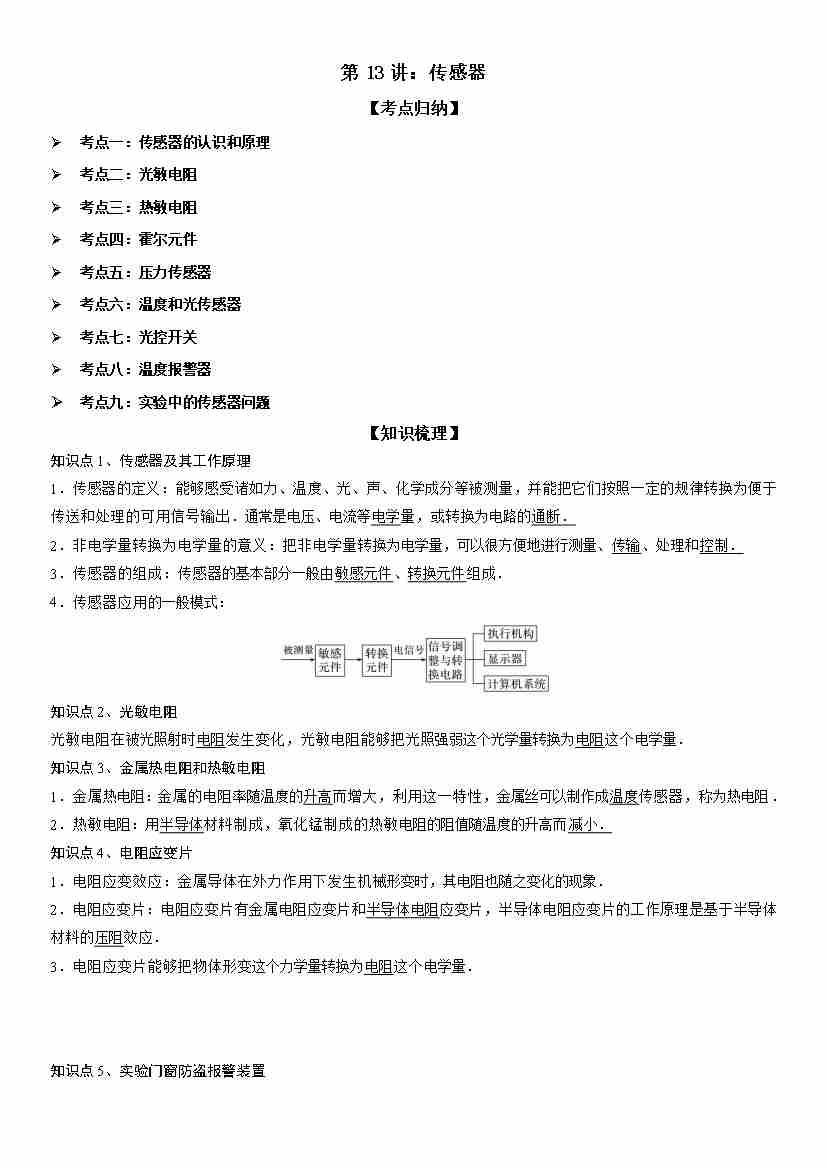 第13讲:传感器 学生版