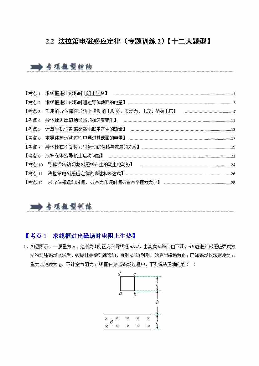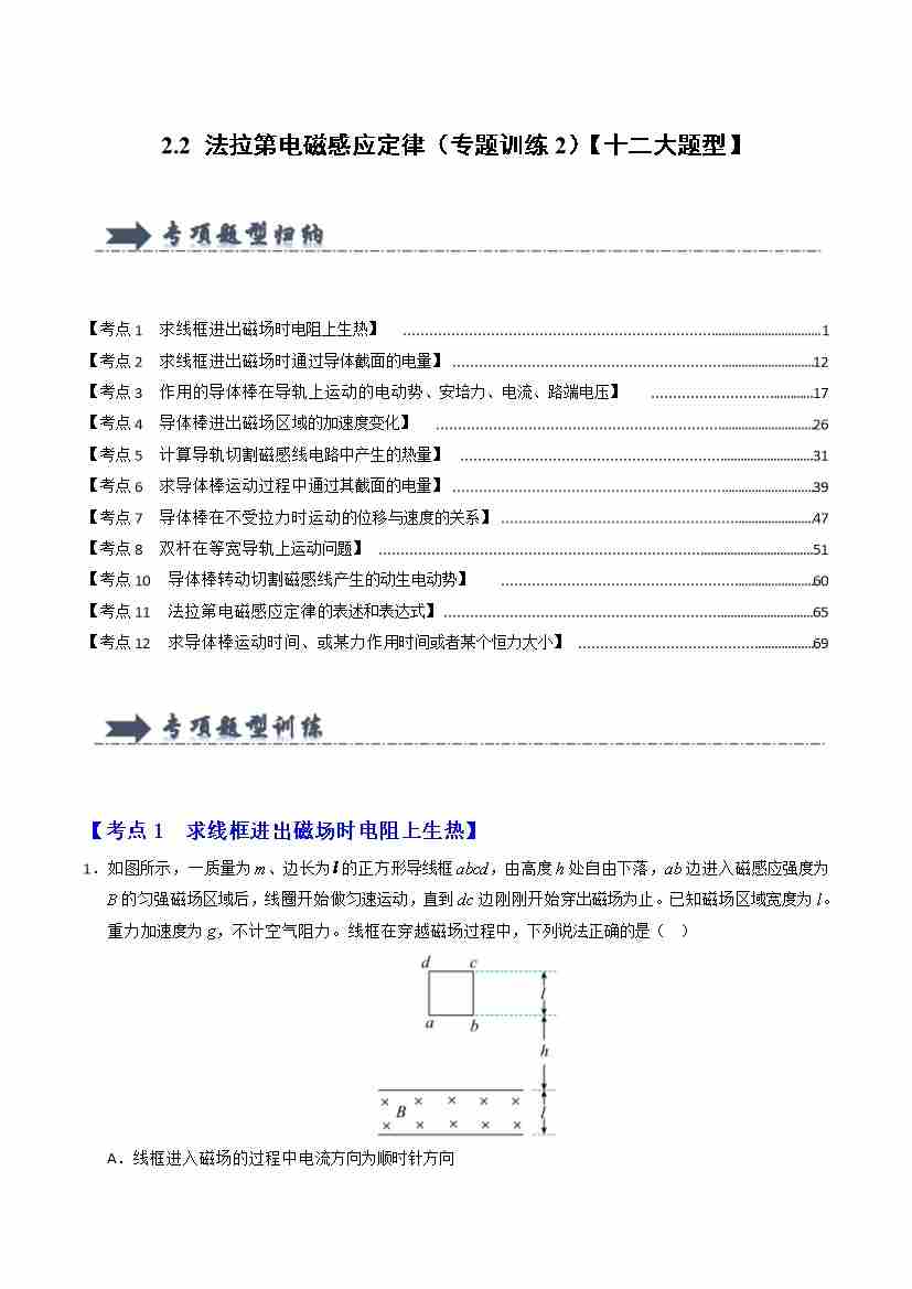 2.2 法拉第电磁感应定律(专题训练2)(十二大题型)(学生版)
