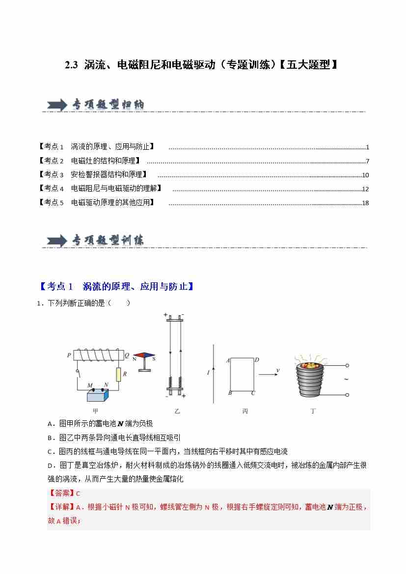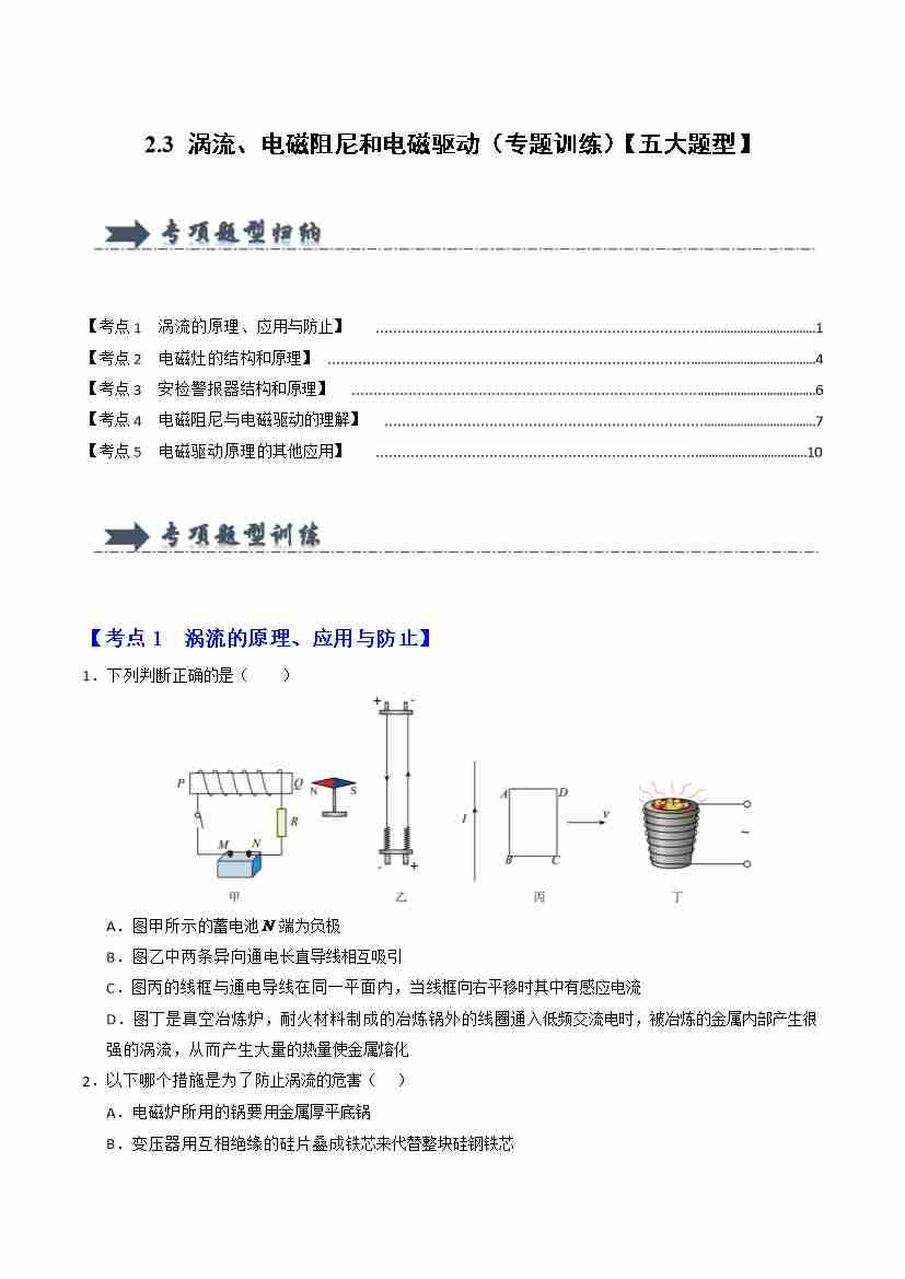 2.3 涡流、电磁阻尼和电磁驱动(专题训练)(五大题型)(教师版)