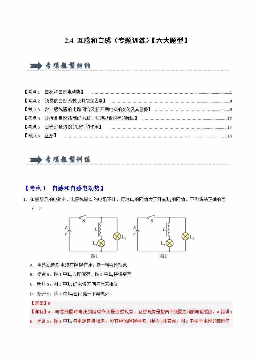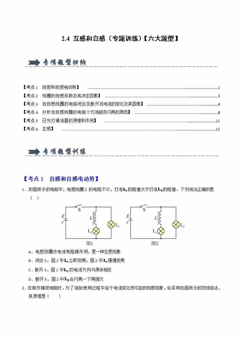 2.4 互感和自感(专题训练)(六大题型)(教师版)