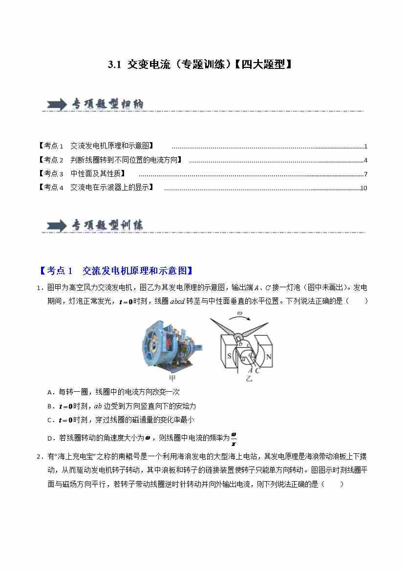 3.1 交变电流(专题训练)(四大题型)(学生版)