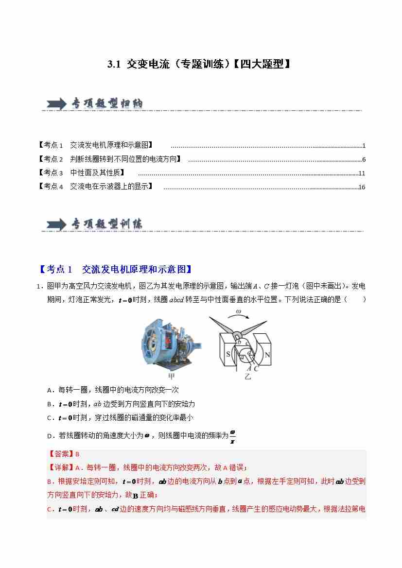 3.1 交变电流(专题训练)(四大题型)(教师版)