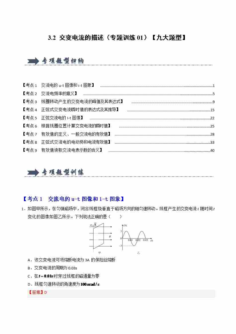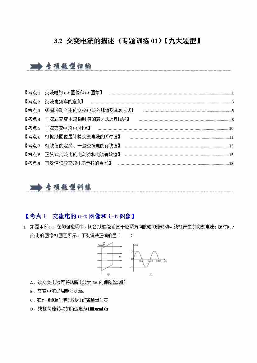 3.2 交变电流的描述(专题训练01)(九大题型)(学生版)