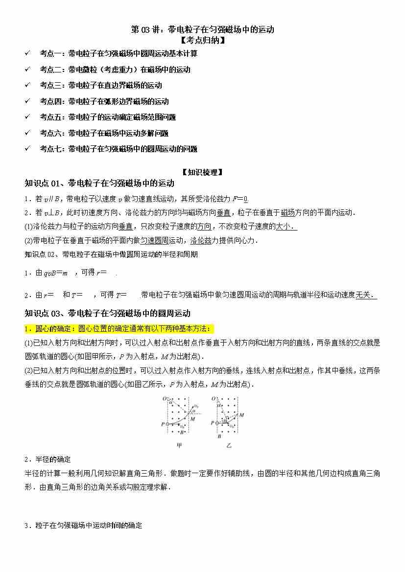 第03讲:带电粒子在匀强磁场中的运动 学生版