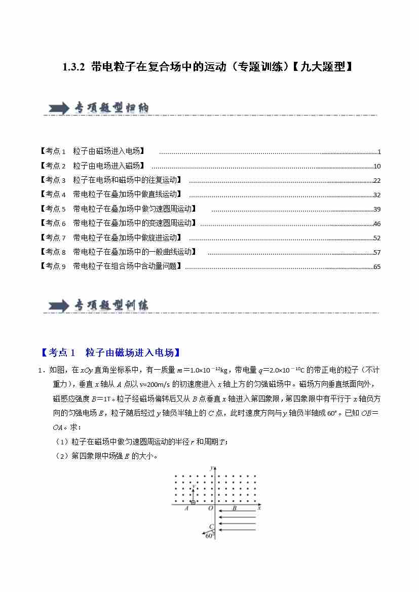 1.3.2 带电粒子在复合场中的运动(专题训练)(九大题型)(学生版)