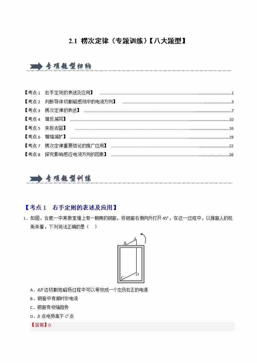 2.1 楞次定律(专题训练)(八大题型)(学生版)