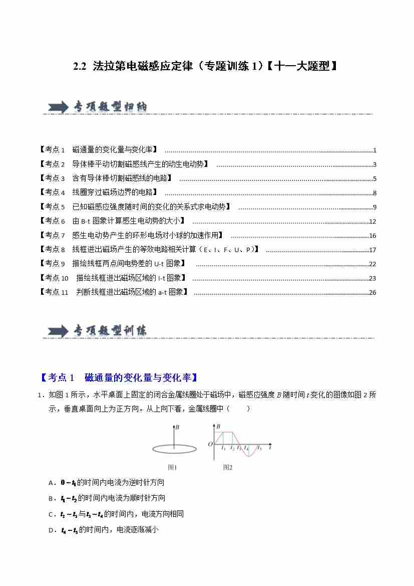 2.2 法拉第电磁感应定律(专题训练1)(十一大题型)(学生版)