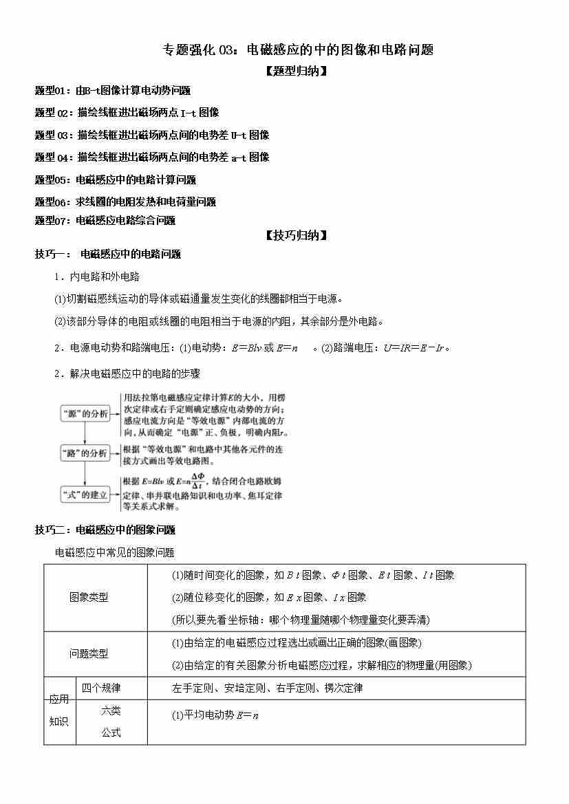 专题强化03:电磁感应的中的图像和电路问题 学生版