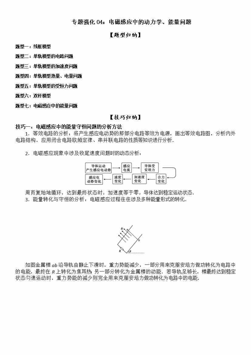 专题强化04:电磁感应中的动力学、能量问题 学生版
