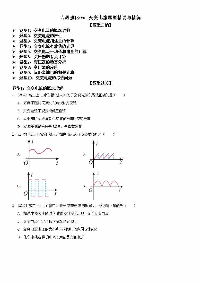 专题强化05:交变电流题型精讲与精练 学生版