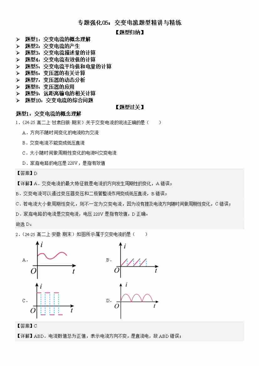 专题强化05:交变电流题型精讲与精练 教师版