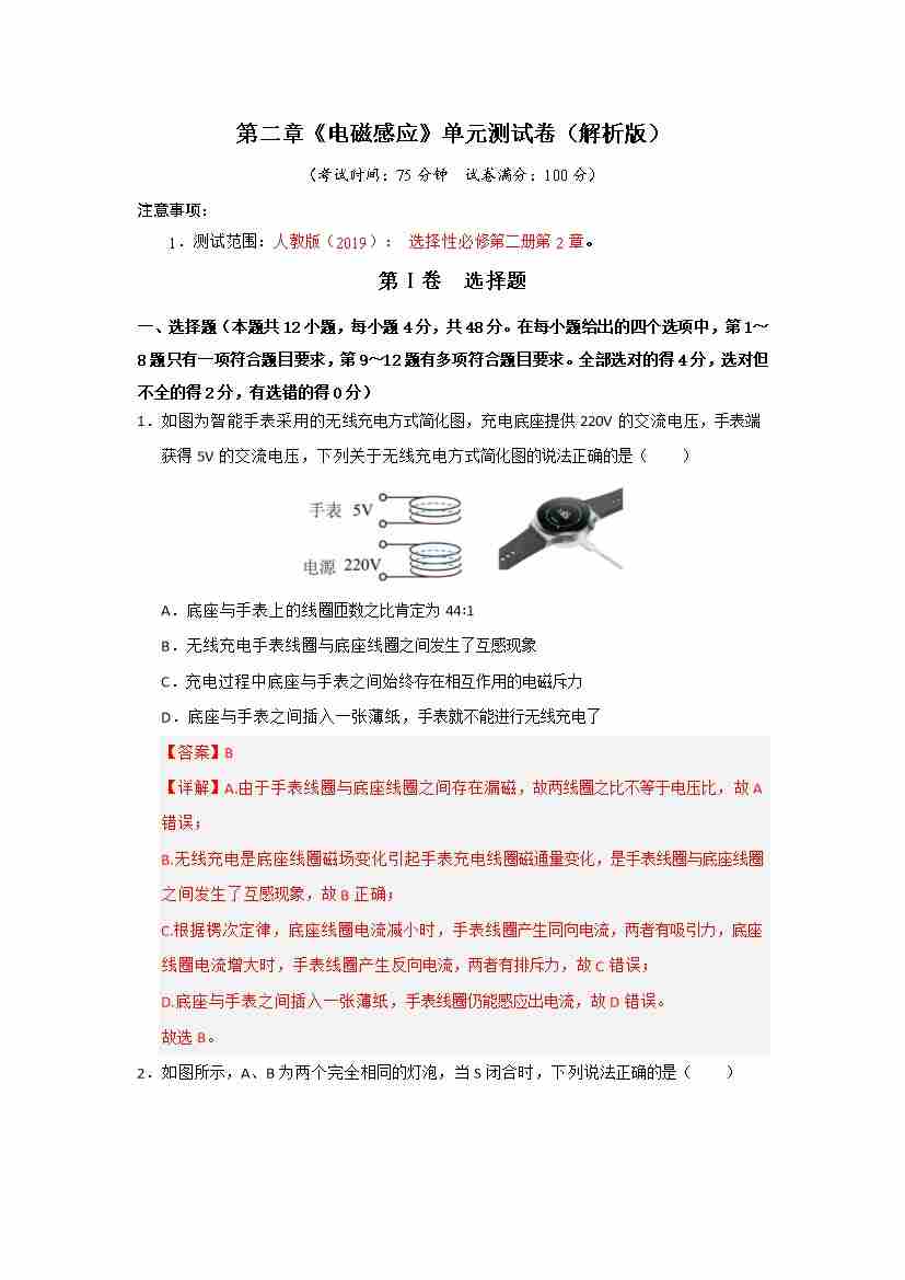 第2章《电磁感应》单元测试卷(教师版)