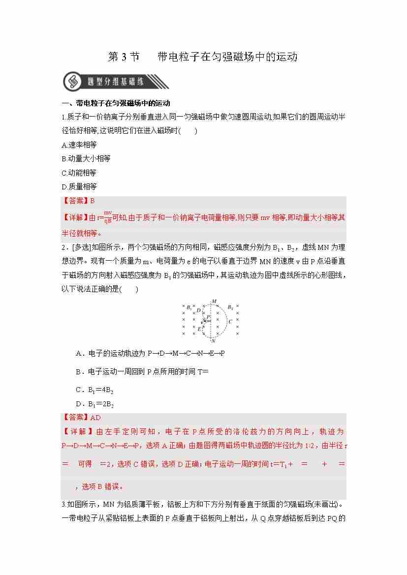 1.3 带电粒子在匀强磁场中的运动(分层作业)(原卷版)