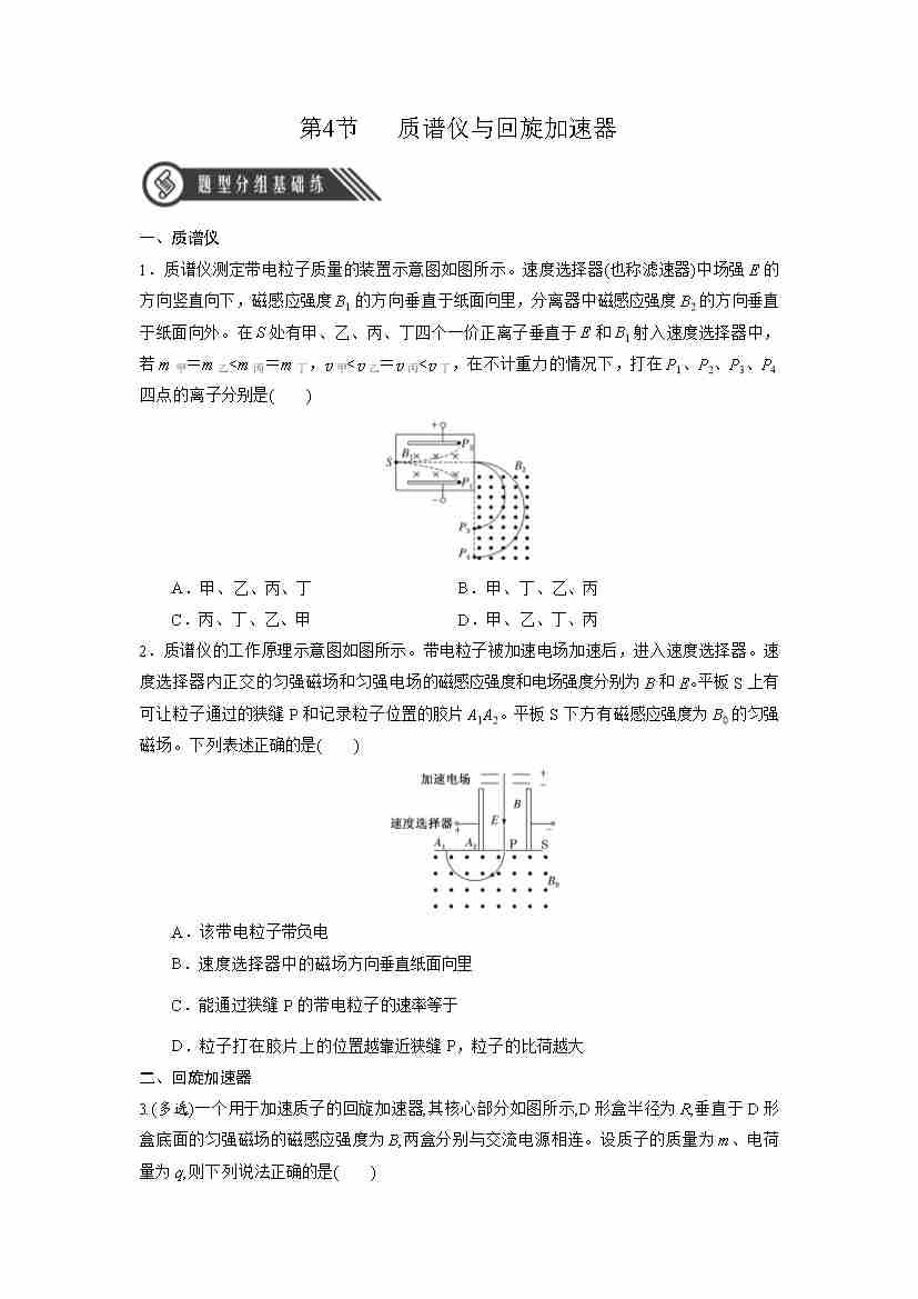 1.4 质谱仪与回旋加速器(分层作业)(原卷版)
