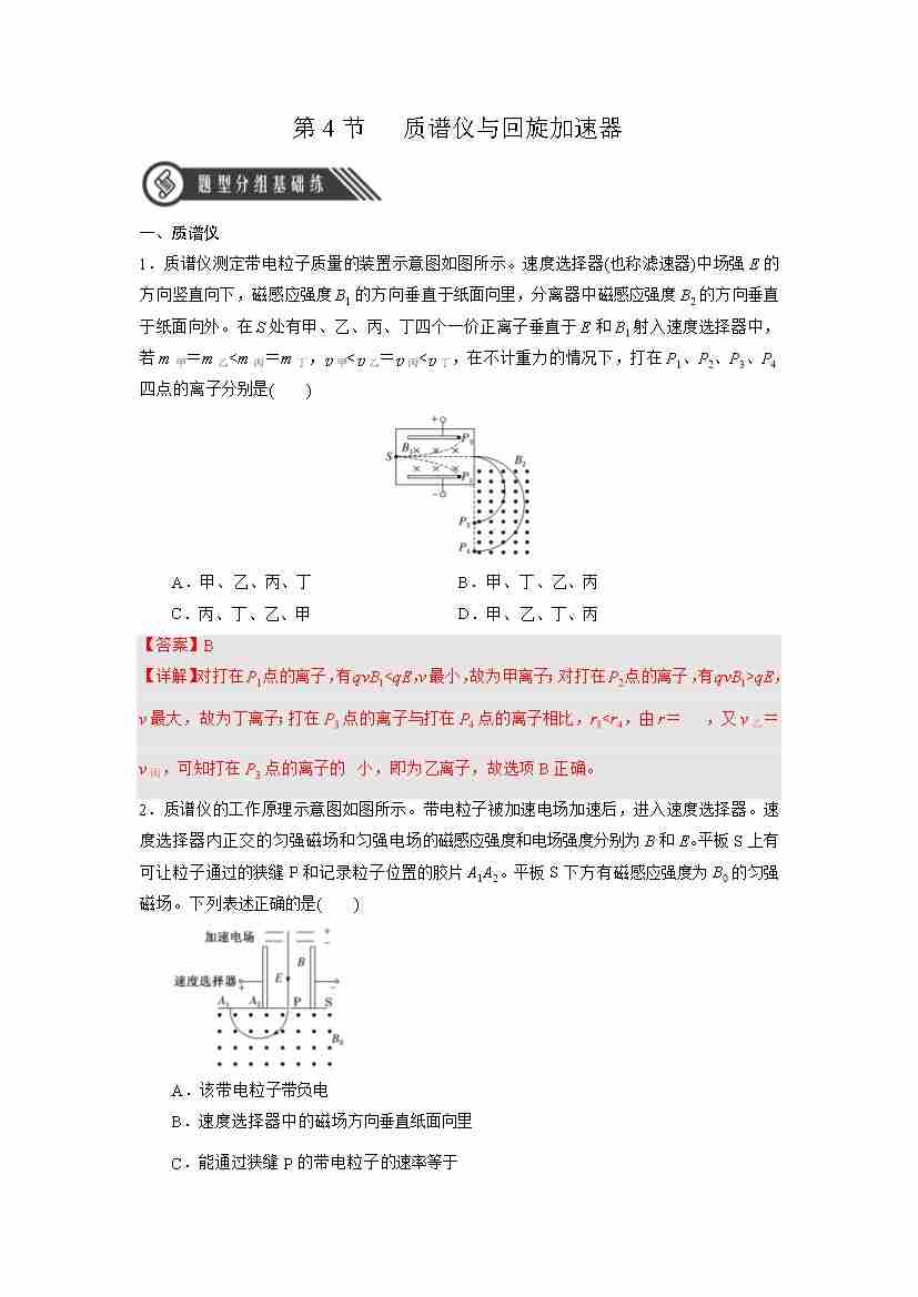 1.4 质谱仪与回旋加速器(分层作业)(解析版)
